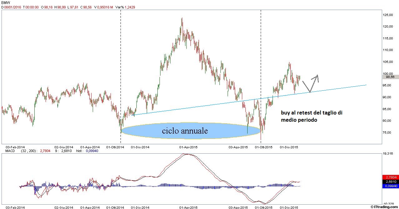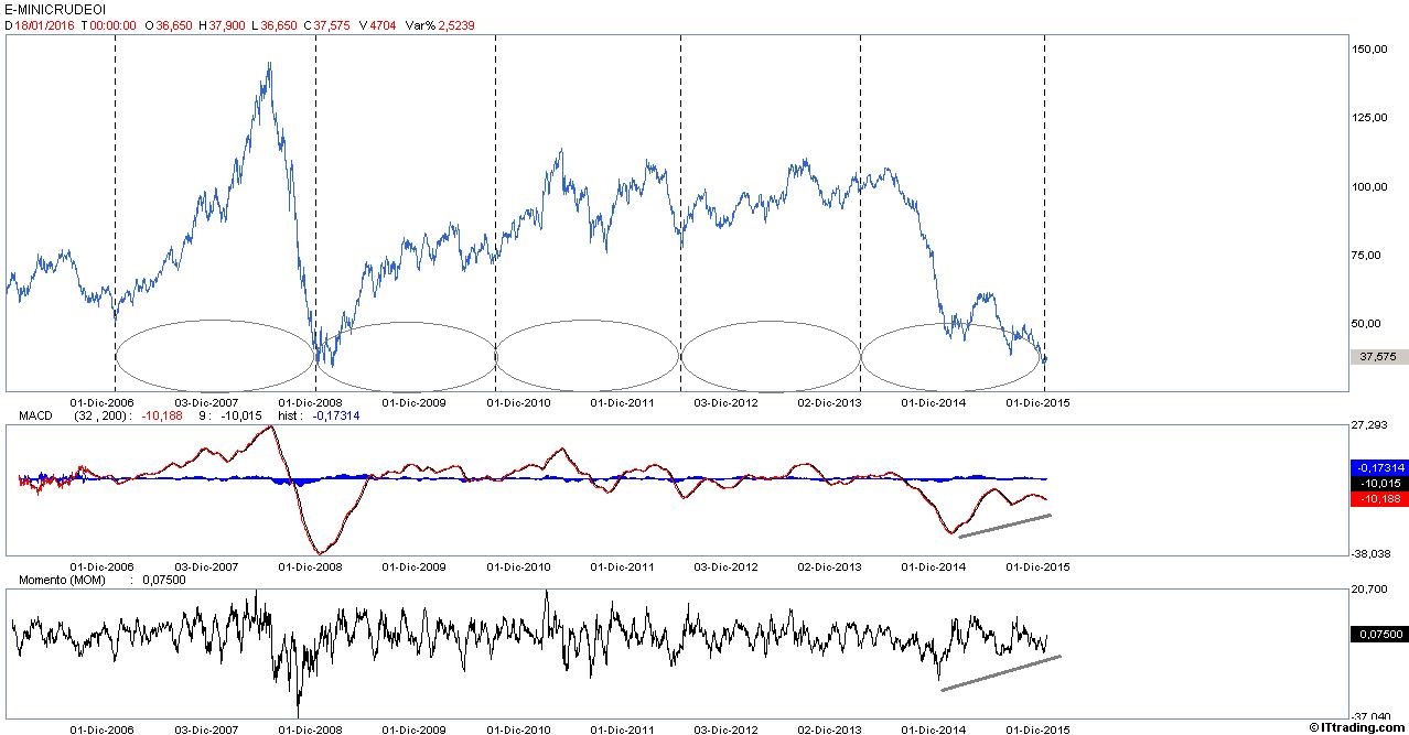 E’ possibile da un punto di vista ciclico che si possa assistere entro pochissime sedute a un forte rimbalzo del crude, e l’analisi tecnica conferma in caso di rottura dei 38,50 $