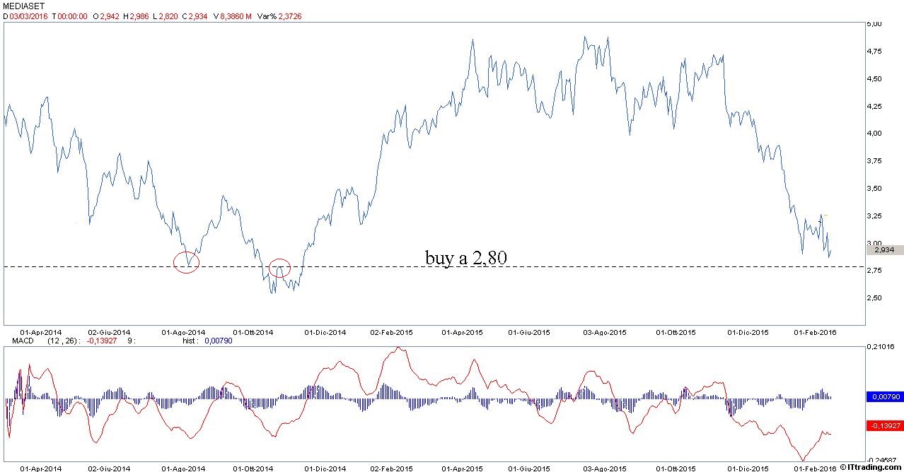 Alcuni titoli a livelli interessanti, in dei grafici ho scelto il timeframe weekly in quanto dopo la lunga discesa, le prime resistenze “sere” per valutare un buy sono ancora lontane, su Mediaset ho messo due grafici, per monitorare sia il buy che il sell
