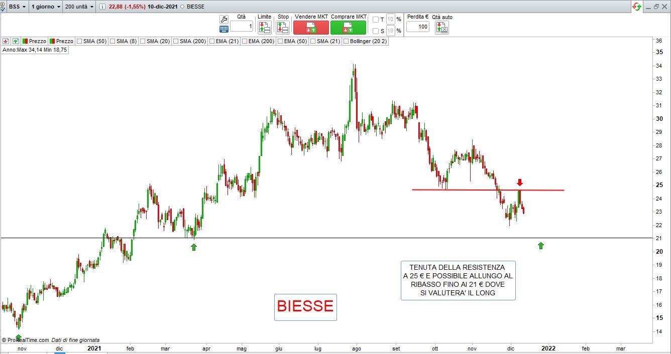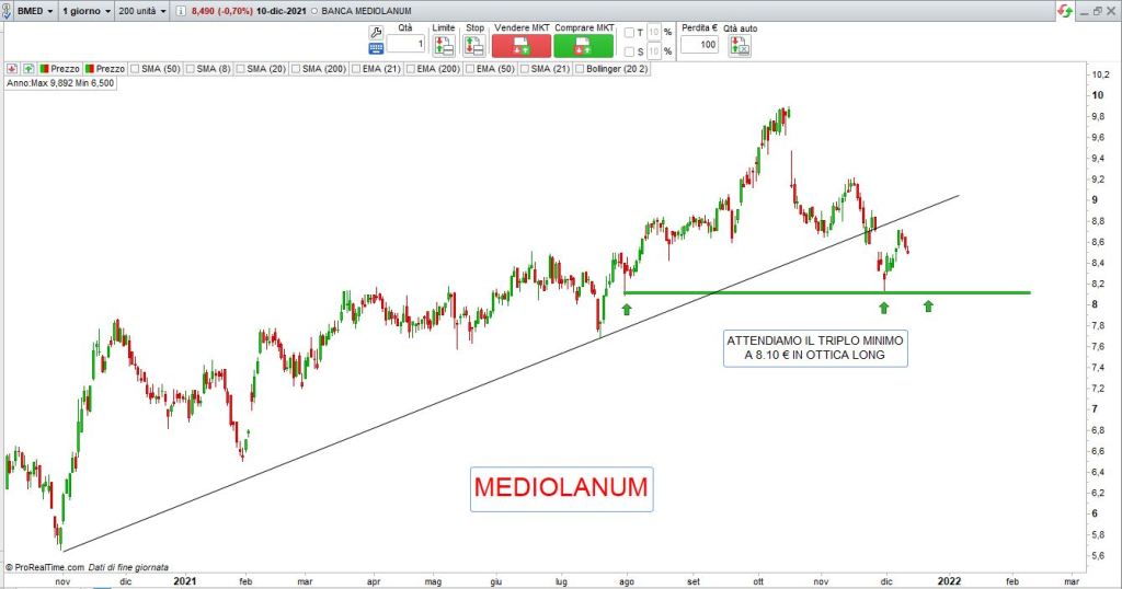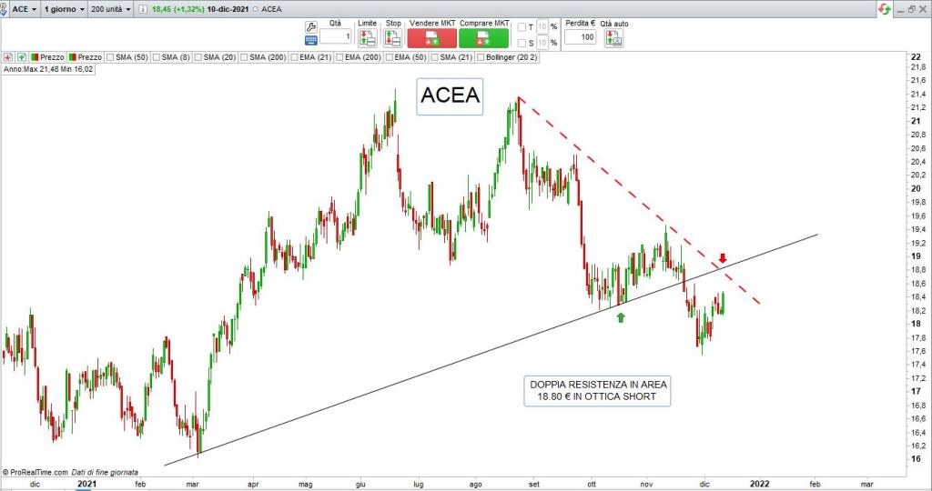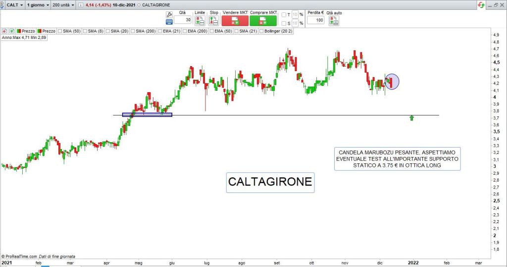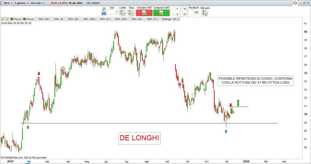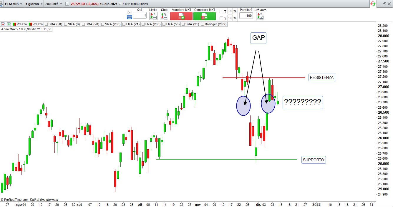 settimana di profonda incertezza per l’indice di Borsa Italiana Ftsemib, dopo la repentina discesa dovuta alla variante Omicron del Covid abbiamo visto congestione, gap al rialzo e poi ancora sessioni di debolezza, in questi casi è opportuno operare sui singoli titoli azionari in cerca di spunti di trading il più chiari possibile.