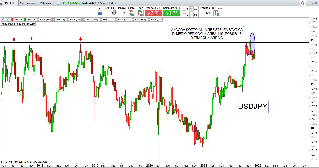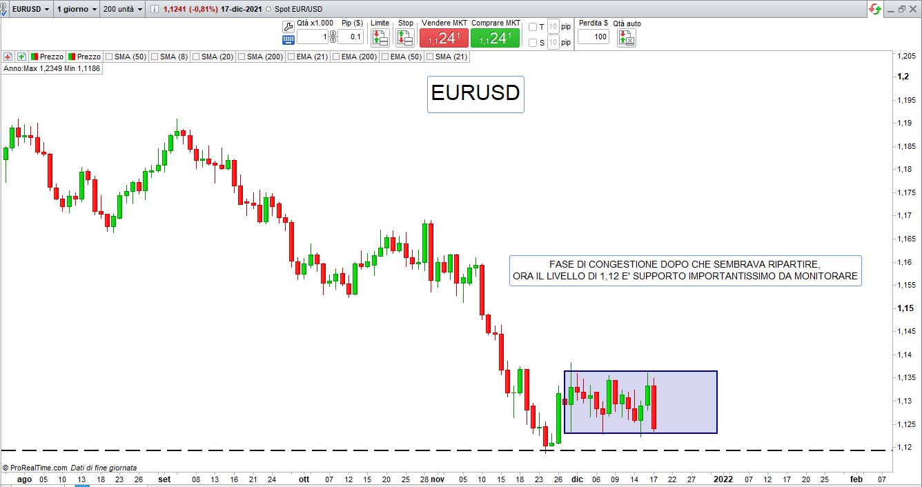 forte volatilità nella passata settimana sui mercati valutari con le Banche Centrali a far da protagoniste, la Bank of England sfida la pandemia e alza i tassi, Powell della Fed promette tre ritocchi nel 2022 e Lagarde della Bce non abbassa invece la guardia e mette le mani avanti, sono improbabile per l’ Euro aumenti dei tassi nel nuovo anno.