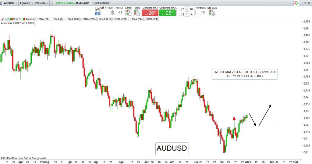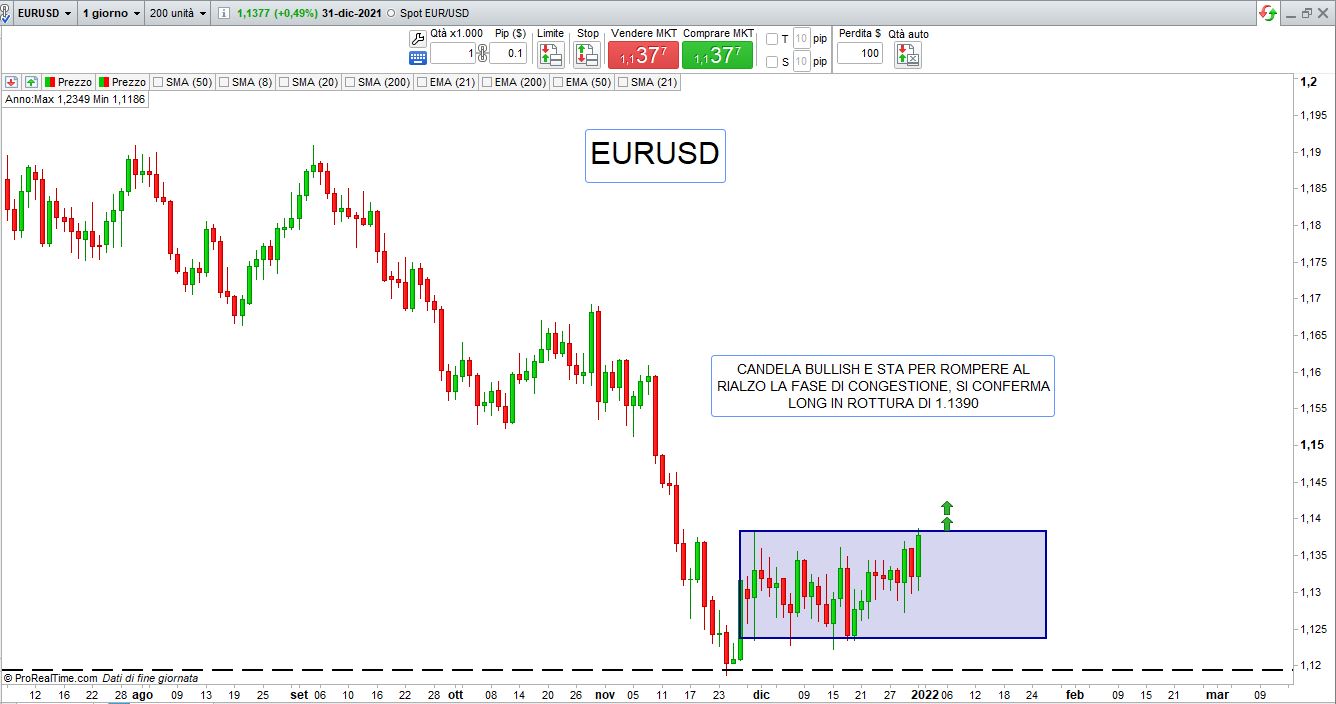 E nel 2022 non sarà da meno, inflazione e pandemia chiameranno gli Istituti a nuovi interventi che detteranno nuovi trend, noi pensiamo che sulla coppia regina EurUsd avremo un prolungato movimento rialzista, ma vediamo per ora nel breve quali opportunità di trading possiamo cogliere grazie all’analisi tecnica: