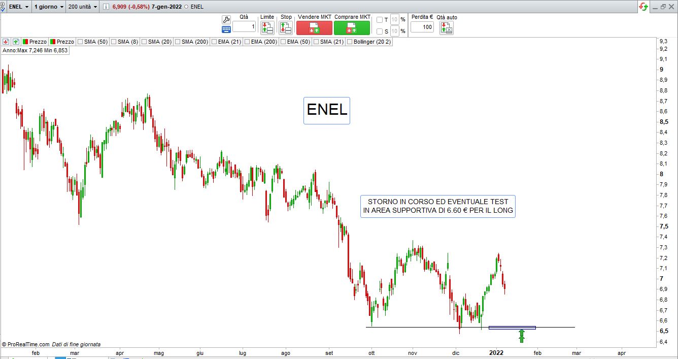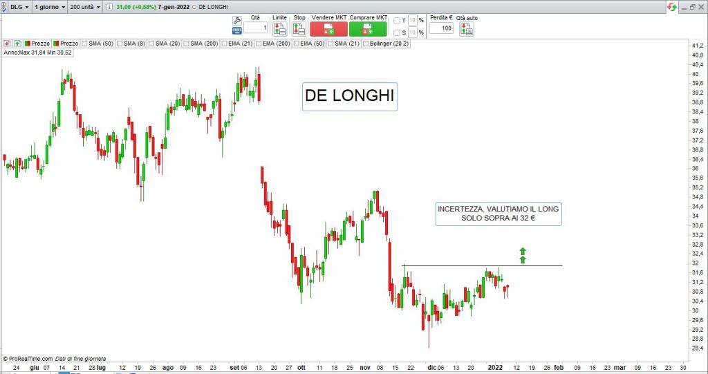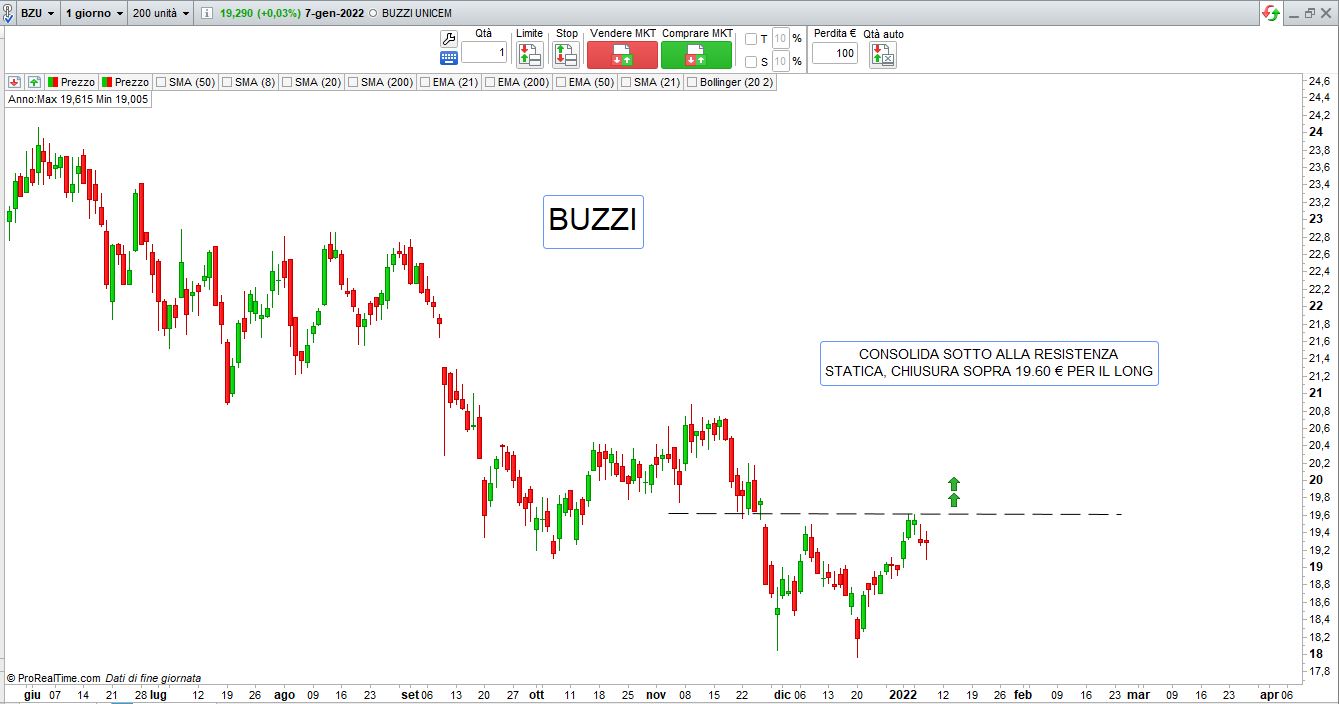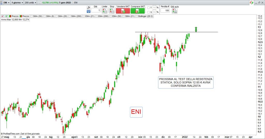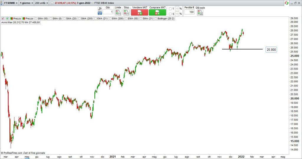 si è chiuso il 2021 con il Ftsemib all’attacco dei 28.000 punti che per ora hanno respinto verso il basso le quotazioni ma il trend rialzista appare solido e tale resta fintanto che l’indice di Borsa Italiana si trova sopra al livello dei 25.800 punti: