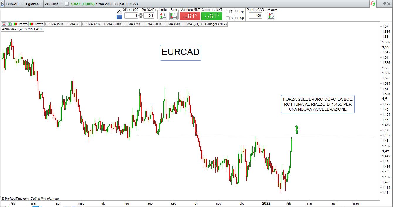 è la volta della Bce e di miss Lagarde che spariglia le carte in tavola mettendo il turbo all’Euro, nella sua conferenza afferma che l’inflazione cresce più velocemente del previsto (ma dai Christine, non mi dire…) e seppure i tassi restano invariati, la Borsa e gli investitori capiscono che presto anche nella zona Euro i rialzi arriveranno come sta per succedere negli Stati Uniti.