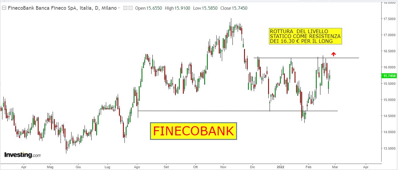 Prima di esaminare alcuni grafici di borsa con spunti di trading, vi invitiamo al webinar gratuito di questa sera dove faremo una panoramica sui mercati con l’analisi tecnica candlestick, ci si può iscrivere ora cliccando su questo link.
