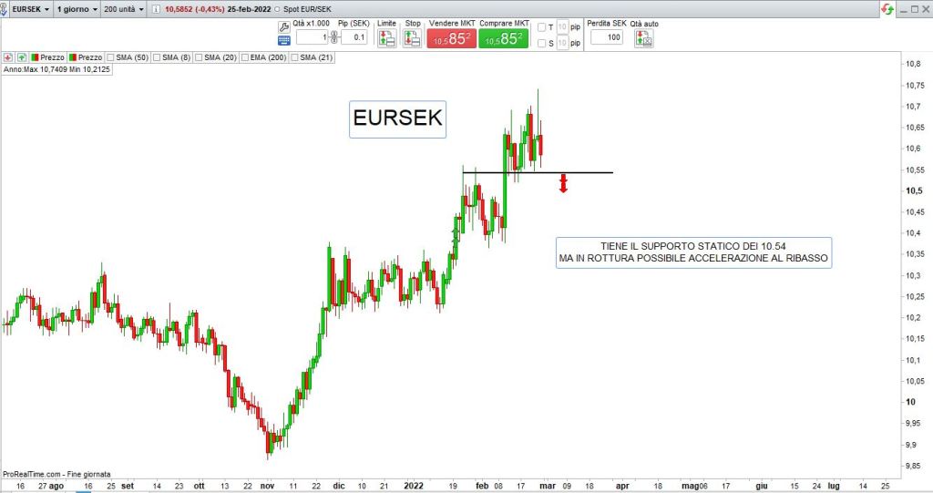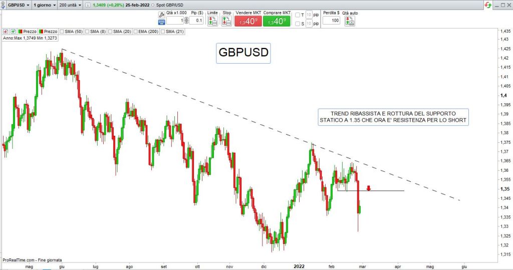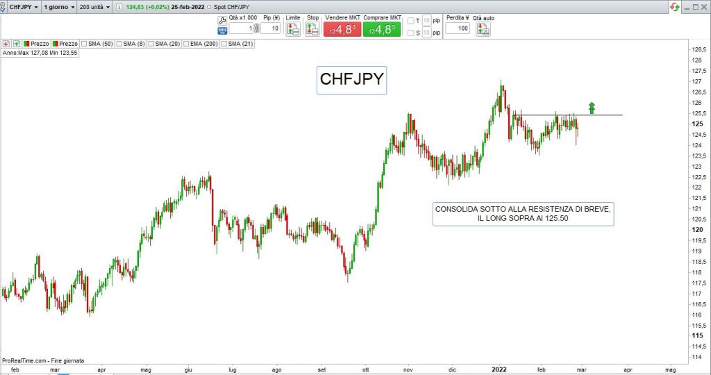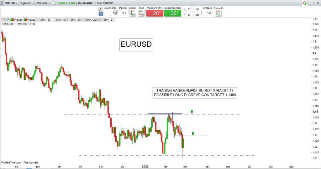 La situazione caotica in Ucraina dove Putin non sembra volersi fermare, aiutato da sanzioni che sappiamo essere storicamente inutili, offre il fianco a nuova possibile mancanza di trend chiaro su molti grafici, occorre quindi adottare un money management severo e andare alla ricerca di livelli supportivi e di resistenza chiari e puliti sui quali contare.