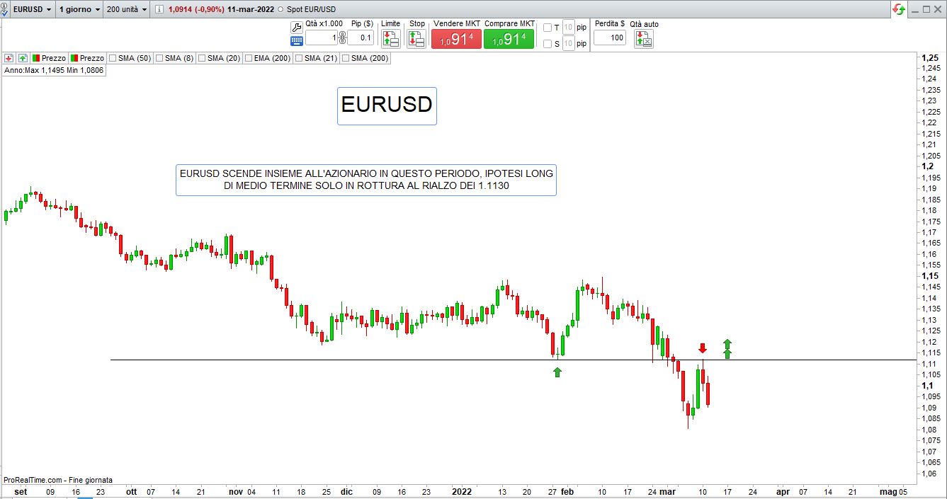 anche i mercati valutari come gli azionari scontano una forte volatilità vista la situazione del conflitto in Ucraina ma anche a causa delle azioni intraprese e promesse dalle banche centrali, la Bce annuncia la fine del Qe e fa capire che dovrà velocemente e con decisione combattere l’inflazione ritoccando i tassi; quel che in generale spaventa noi comuni mortali è che i prezzi di beni importanti sono già in forte aumento viste le tensioni geopolitiche, vedremo se nuove pessime sorprese arriveranno da tassi in salita.