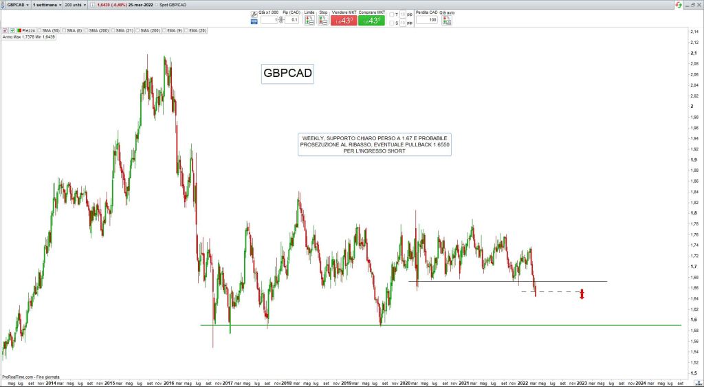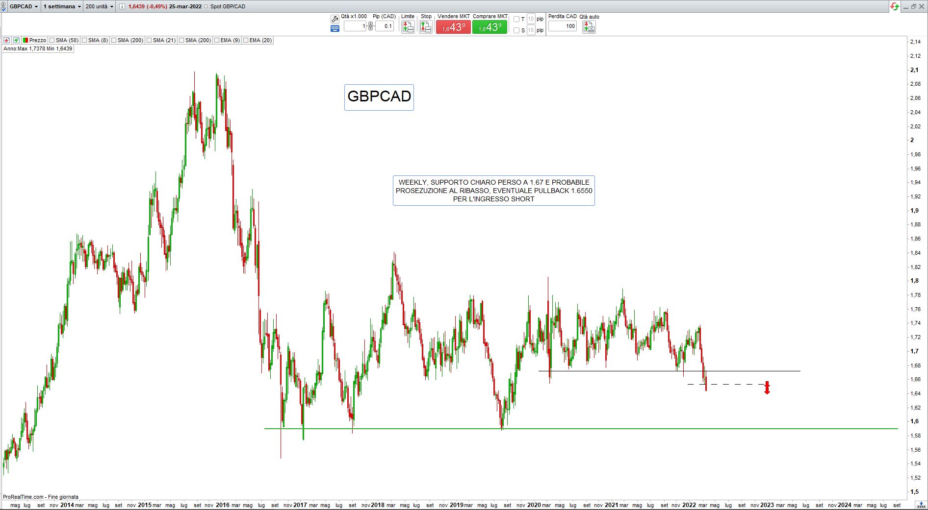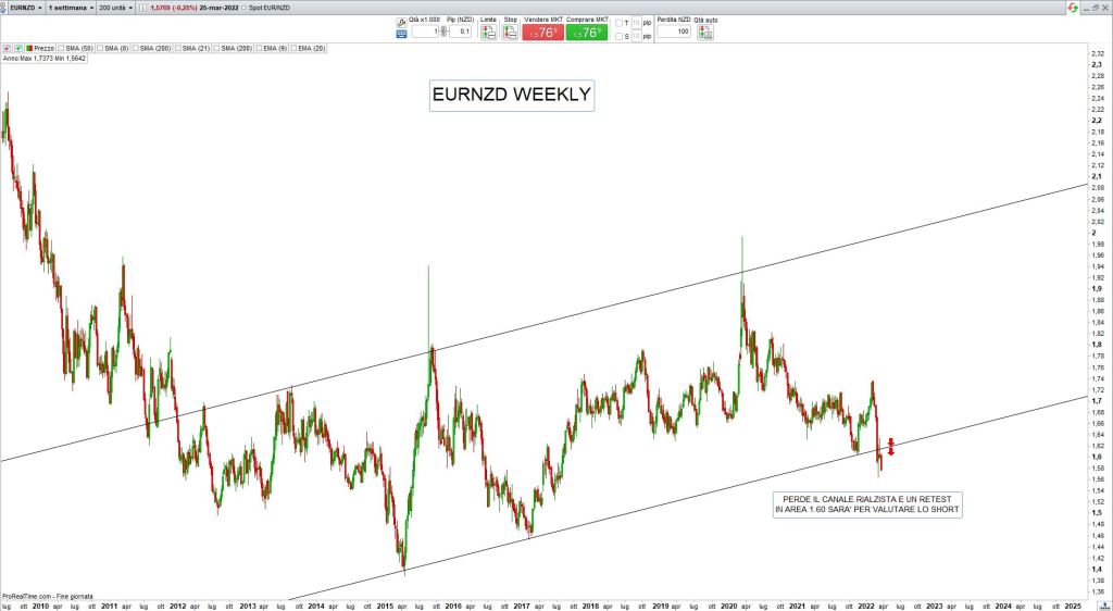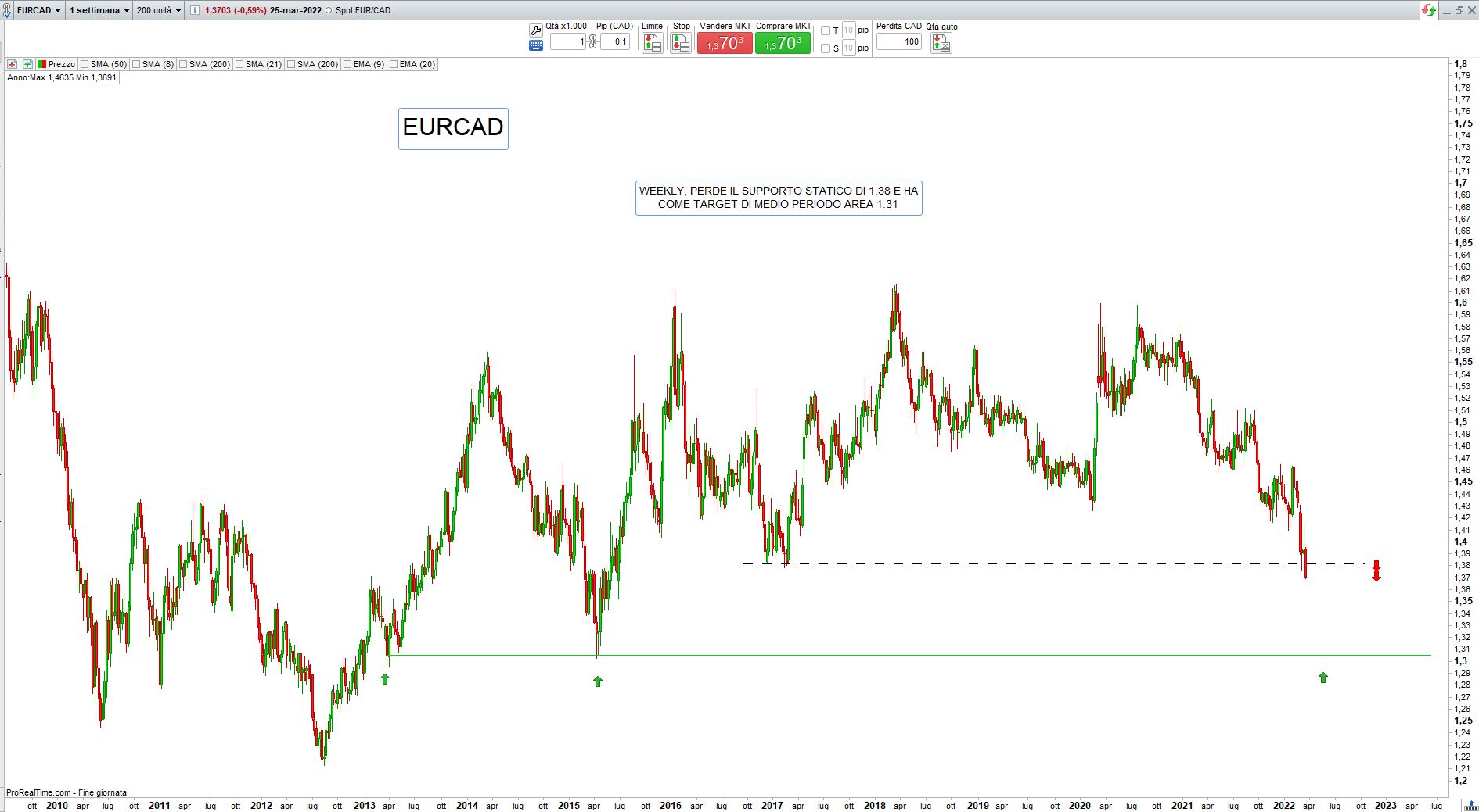 Per l’analisi tecnica sui grafici di borsa abbiamo utilizzato il timeframe weekly con il quale si evidenziano in alcune coppie molto chiaramente dei livelli importanti da monitorare per cogliere delle buone opportunità di trading di breve ma anche di medio periodo, vediamole insieme: