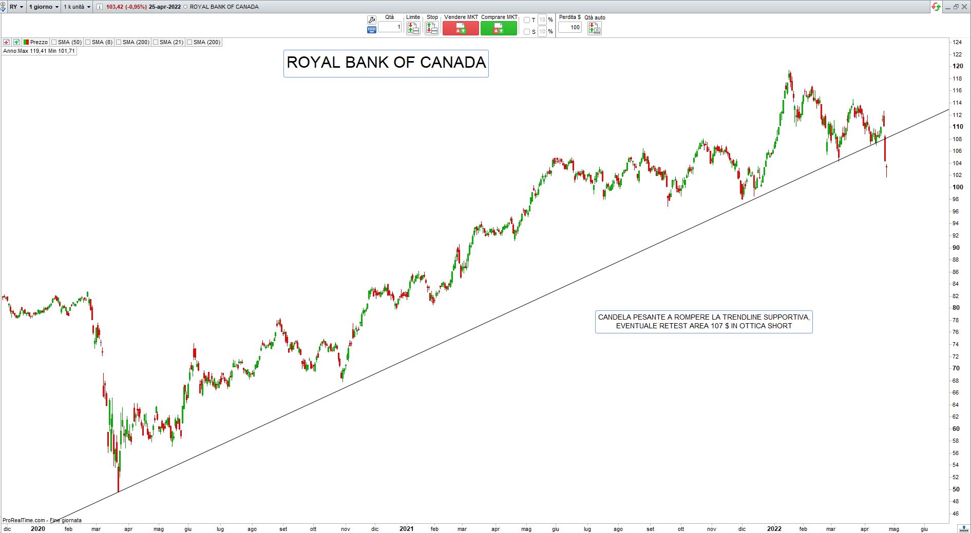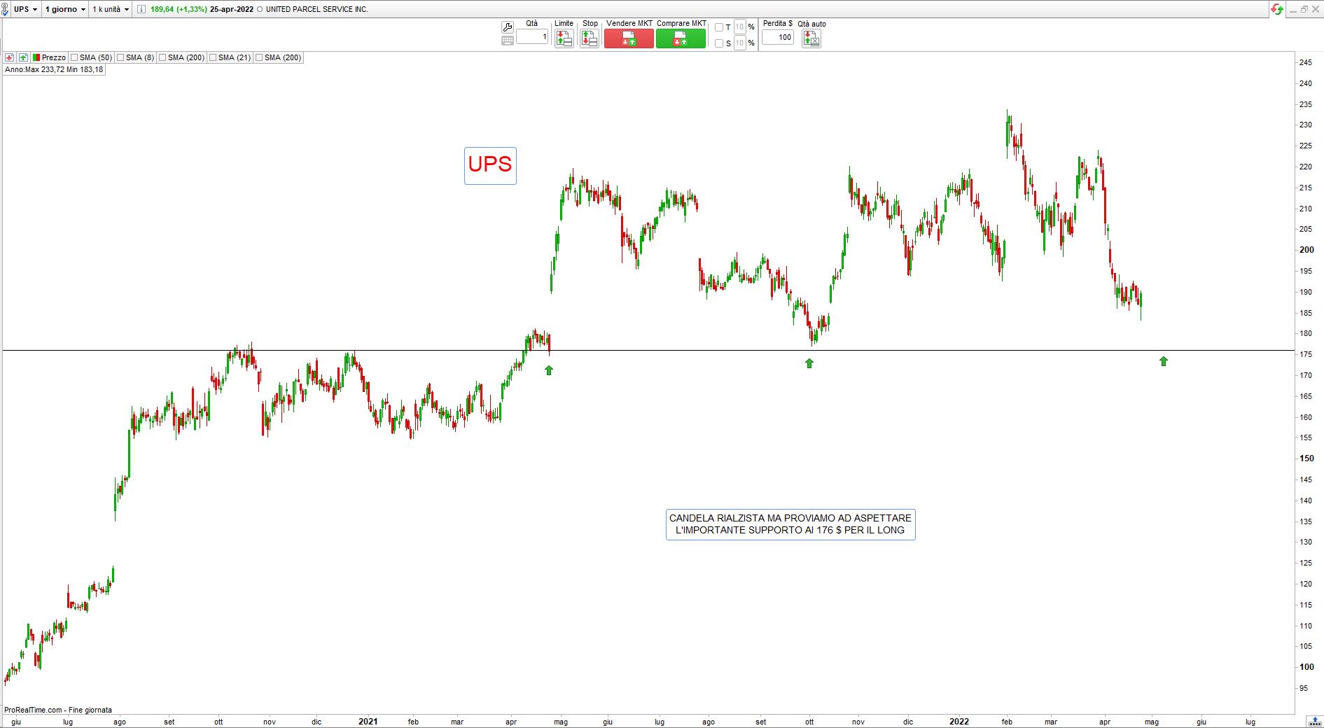 Passiamo all’analisi tecnica per cogliere spunti di trading di breve periodo: