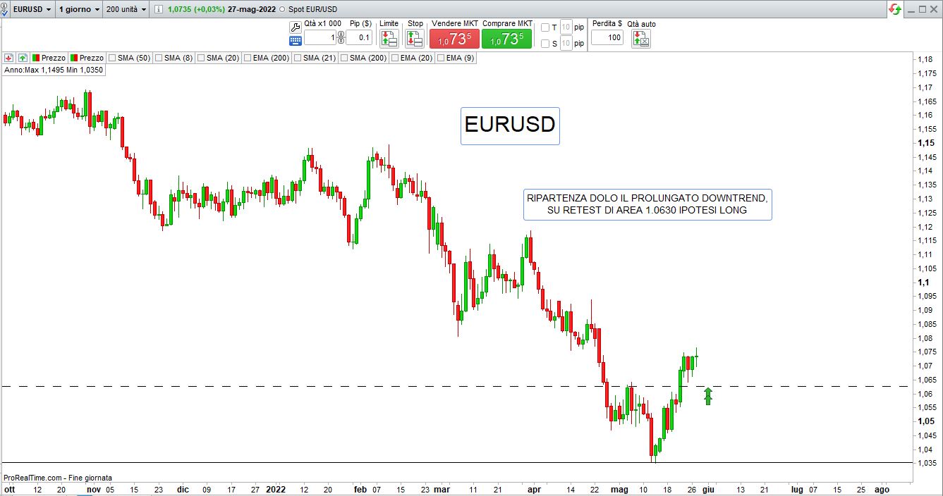 mercati valutari che sembrano offrire spunti importanti di trading e ci aiutano a capire e prevedere anche i movimenti dell’azionario, assistiamo a un possibile cambio di trend su EurUsd in conseguenza di un ottimismo degli investitori dovuto anche ai verbali della Fed che sembra in grado di rassicurare i mercati circa l’inflazione, ciò ovviamente “raffredda” la corsa del Dollaro e per ora sembra essere lo Yen nel brevissimo la valuta rifugio in caso di nuova debolezza di Wall Street.