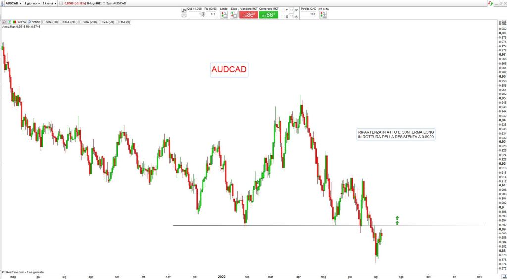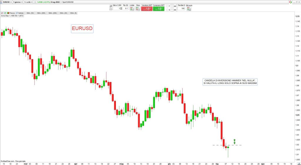 mercati azionari e valutari assai volatili in questo periodo, le Borse dopo un lungo periodo di downtrend sembrano tentare un rimbalzo e questo potrebbe fermare l’ascesa del dollaro Usa che è ormai il bene rifugio per eccellenza, lo dimostra il cambio EurUsd che sembra ormai vicino alla parità, le Banche Centrali continuano incessantemente a diramare annunci in merito all’aumento dei tassi per contrastare l’inflazione.
