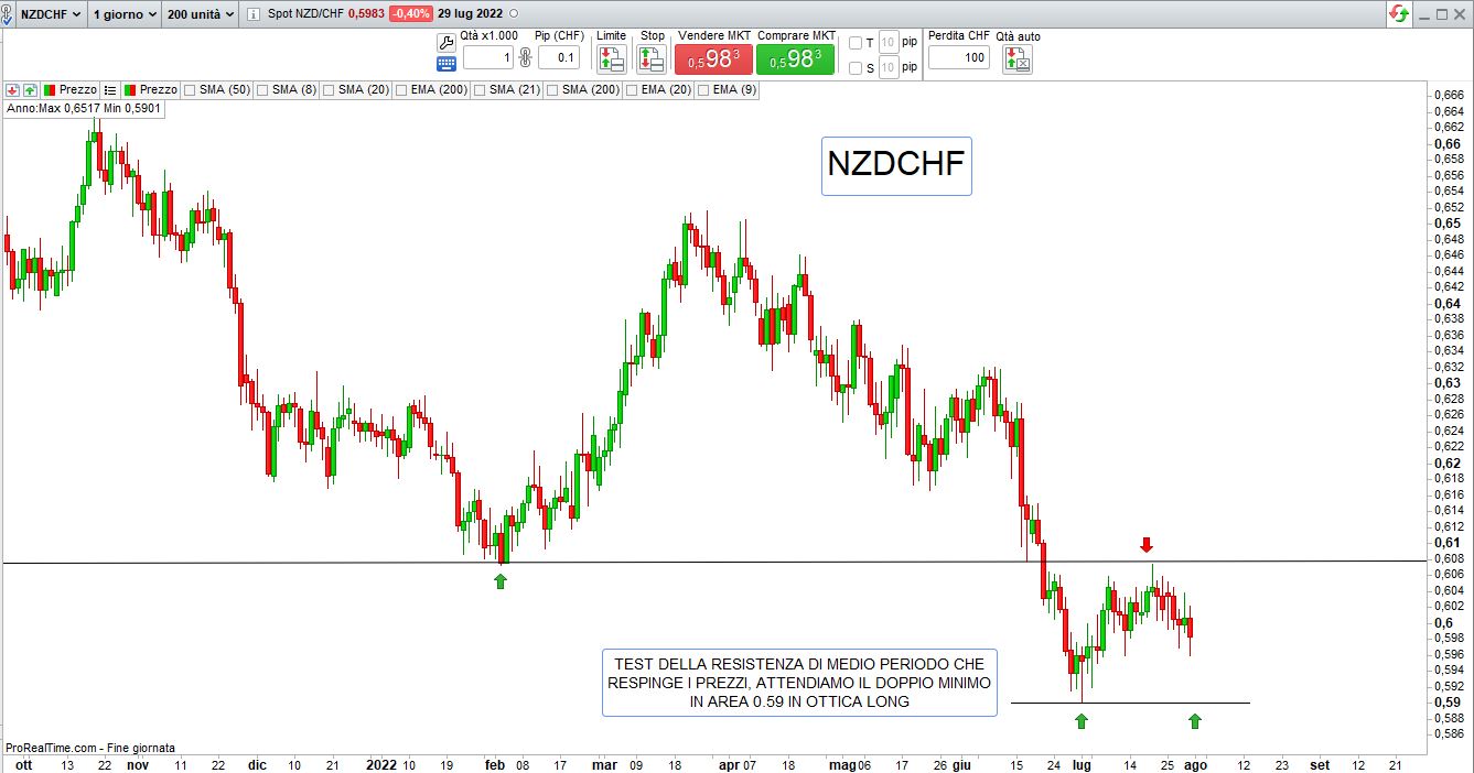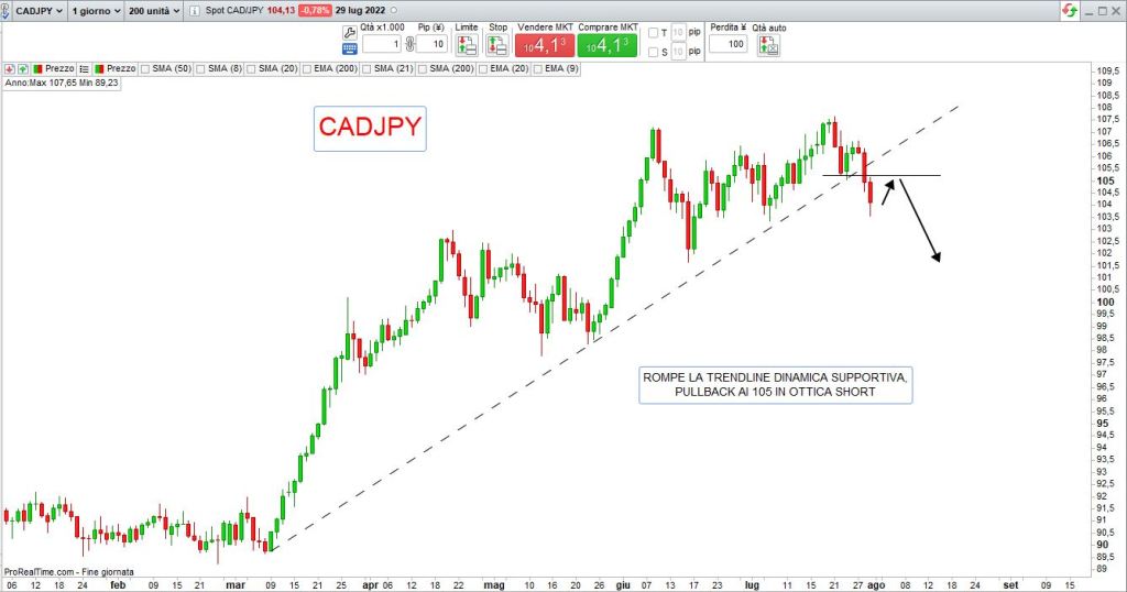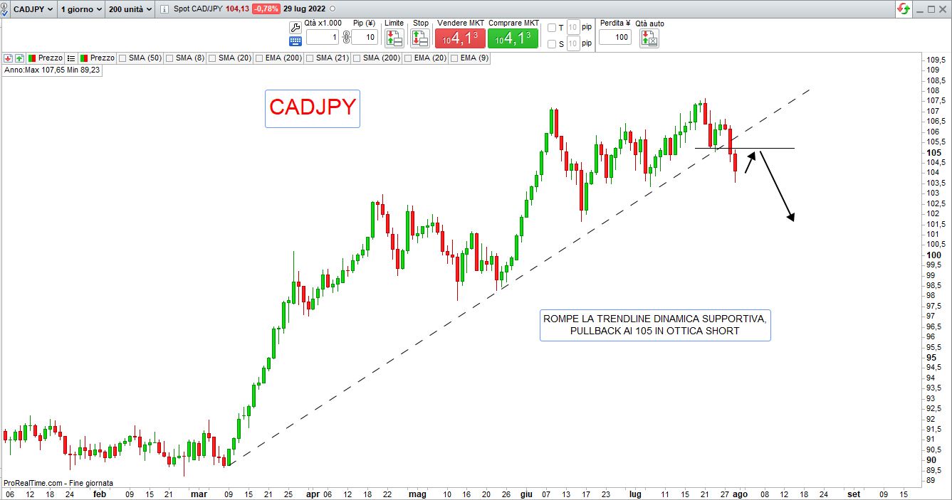 Ancora forza sul Dollaro Canadese direttamente correlato al Petrolio, ma anche in questo caso ci aspettiamo, forse non a brevissimo, debolezza sul cosiddetto “oro nero” e potremmo assistere quindi anche un indebolimento della valuta.