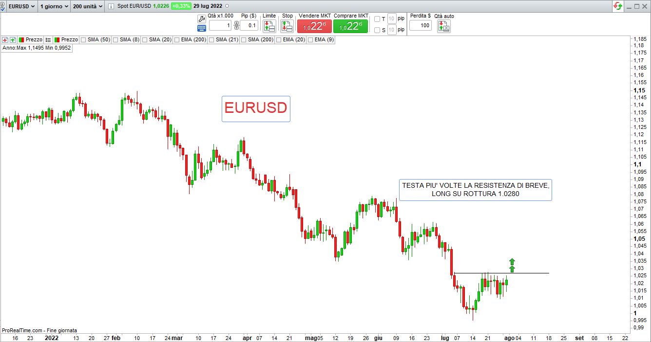 dopo la conferenza di Powell della Fed e dopo il velocissimo test sulla parità per EurUsd abbiamo assistito a un tentativo di rimbalzo, vedremo ora se l’azione della Bce darà forza alla valuta europea, notiamo dopo tanto tempo il risveglio dello Yen Giapponese, nonostante non ci siano ancora cenni di intervento della banca centrale nipponica.