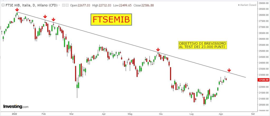 Occorre tenere a mente sempre il movimento generale in ogni grafico di Borsa e ricordare che dall’inizio del 2022 tutti gli indici più importanti sono in negativo, vediamo il nostro Ftsemib ad esempio come sia alle prese con un livello di resistenza in area 23.000 punti: