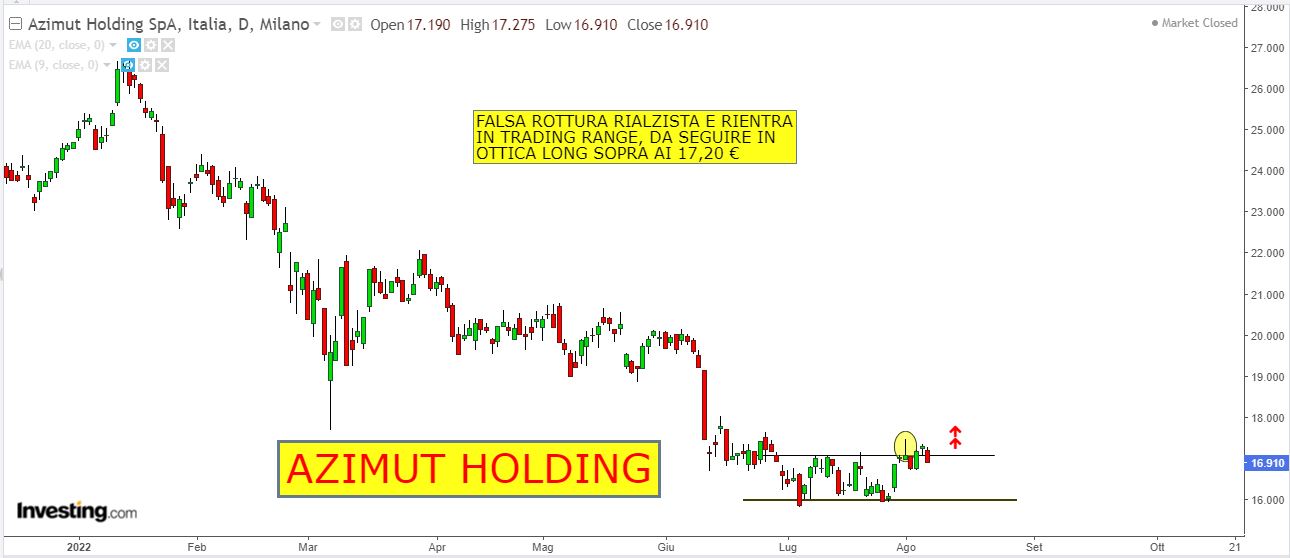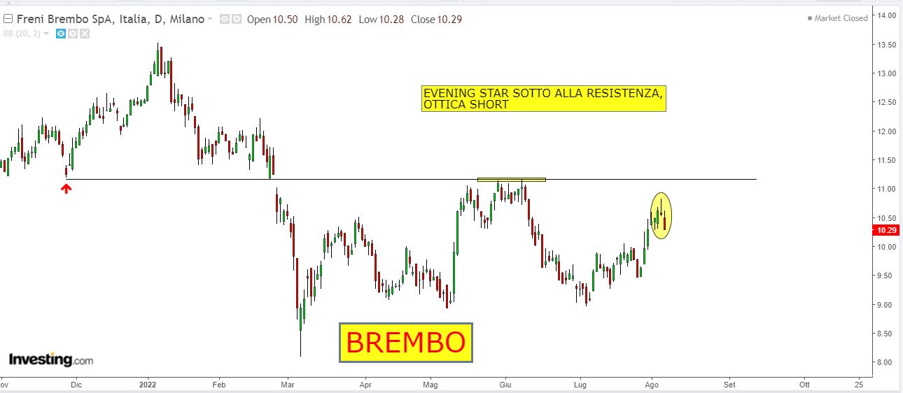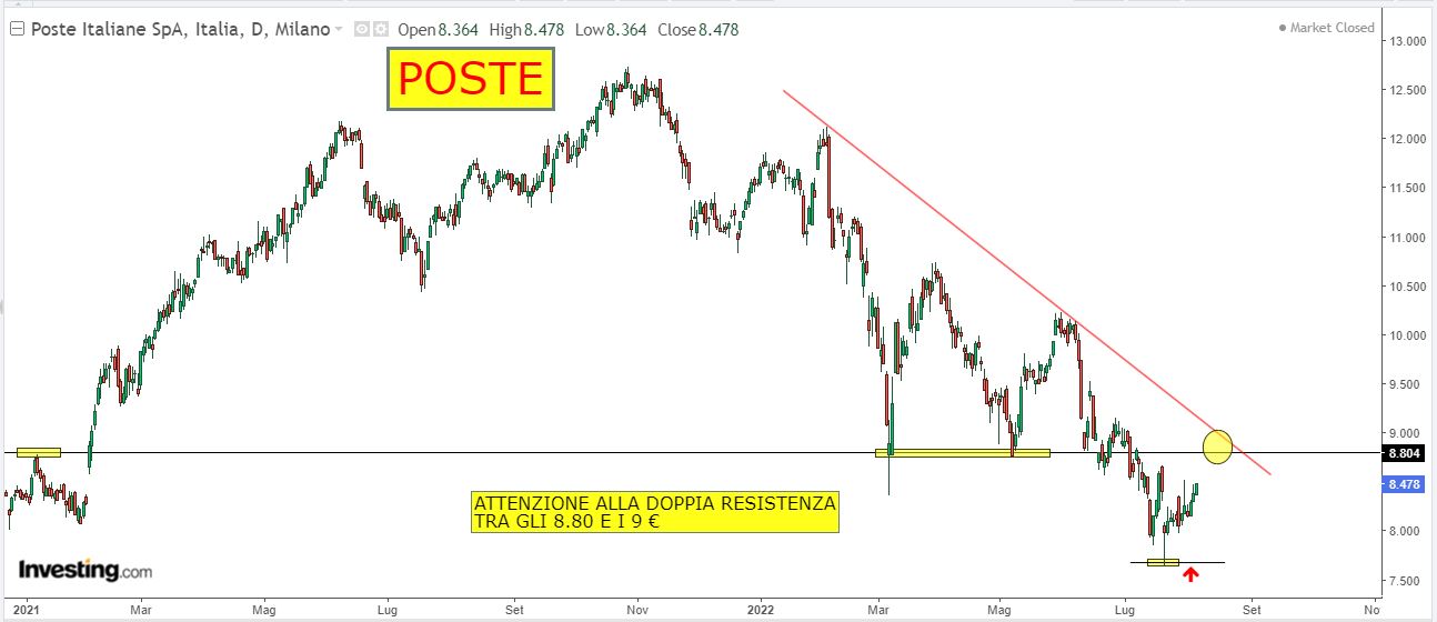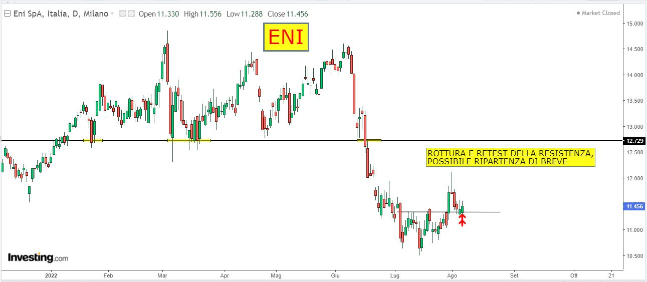 Ora una selezione di alcuni importanti tioli con spunti di trading dettati dall’analisi tecnica: