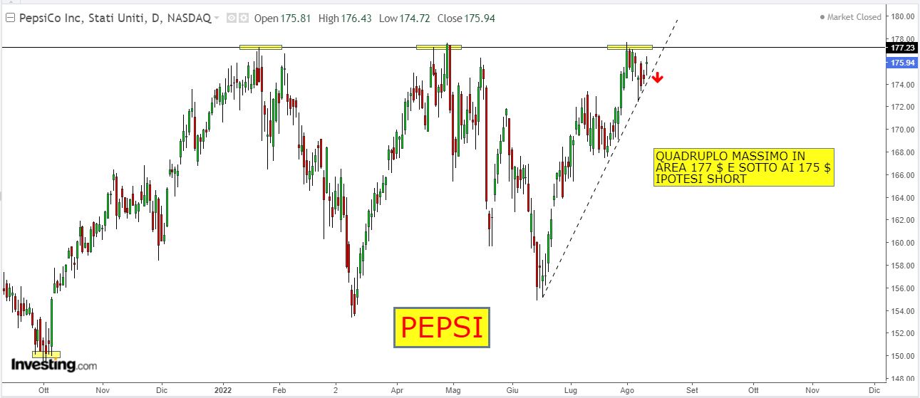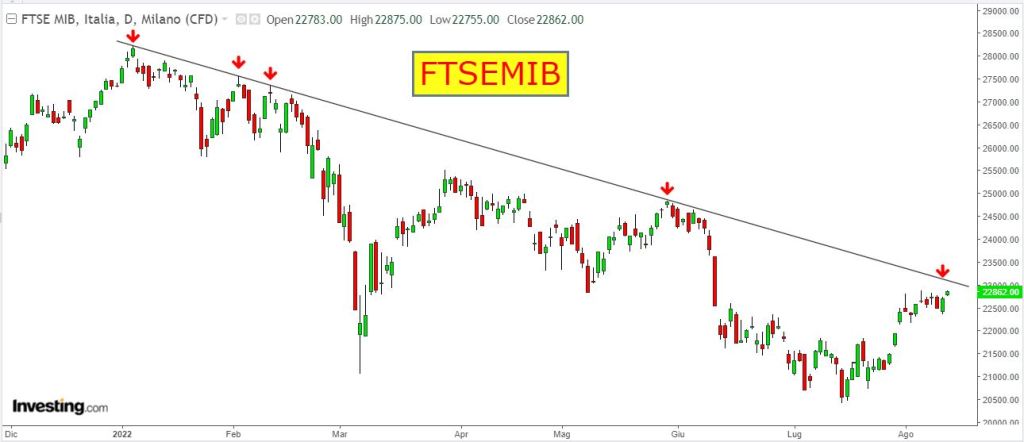 situazione interessante e ricca di opportunità di trading quella sui mercati azionari, anche ad Agosto investitori e trader sono all’opera e seguono le news di Borsa che possono offrire buoni spunti operativi, ieri il dato sull’inflazione Usa ha regalato una spinta a Wall Street e sulla scia anche le borse europee oggi si mostrano toniche: inflazione leggermente più bassa delle attese e quindi possibile a settembre ritrovarsi con una Fed meno “falco” e più “colomba”, ossia senza intenzioni di nuovi pesanti aumenti dei tassi per frenare l’inflazione.