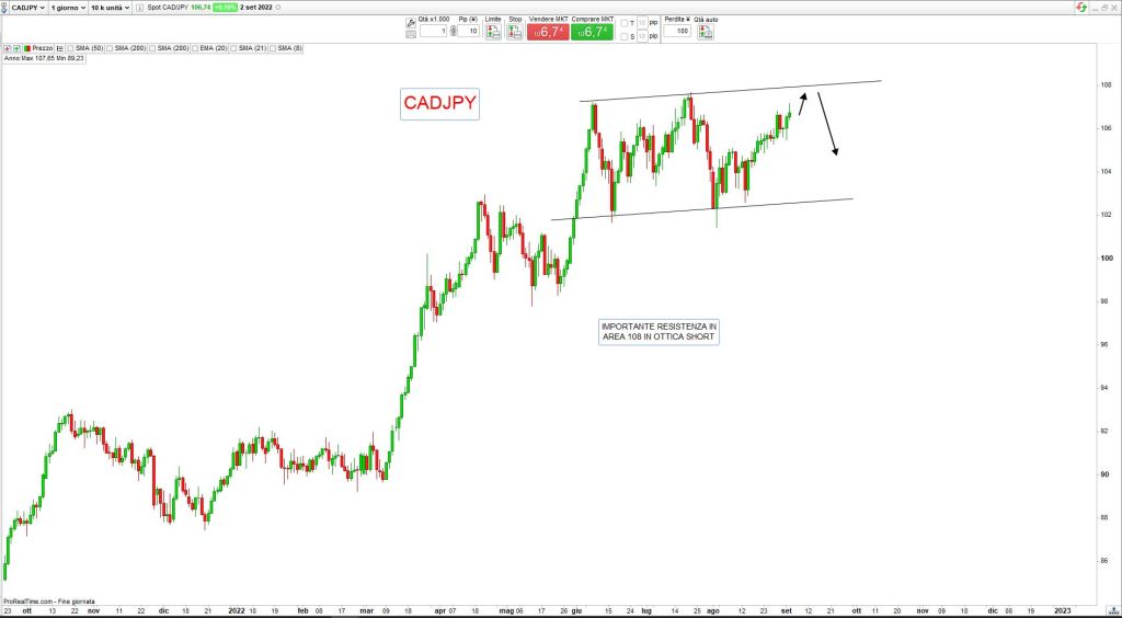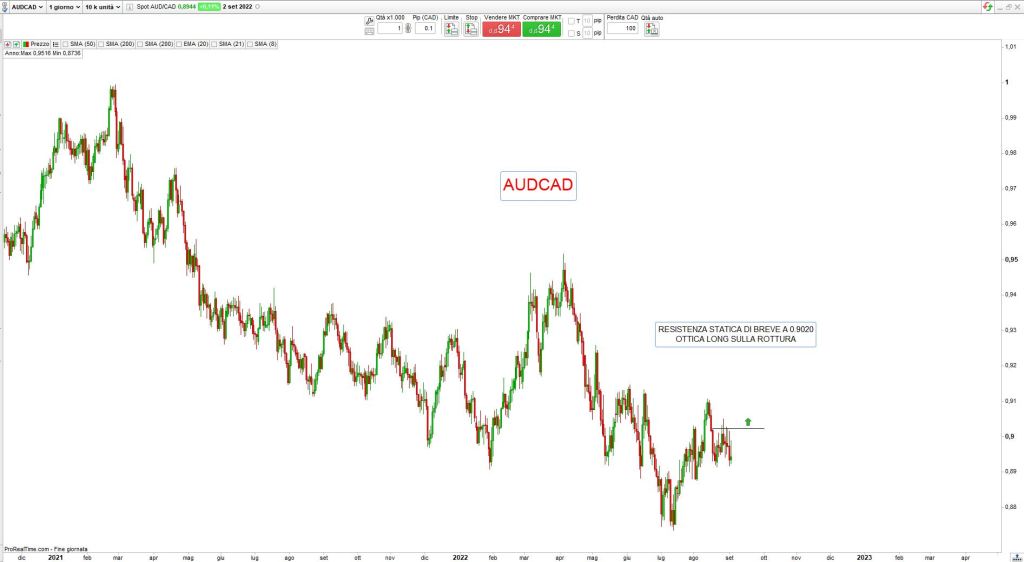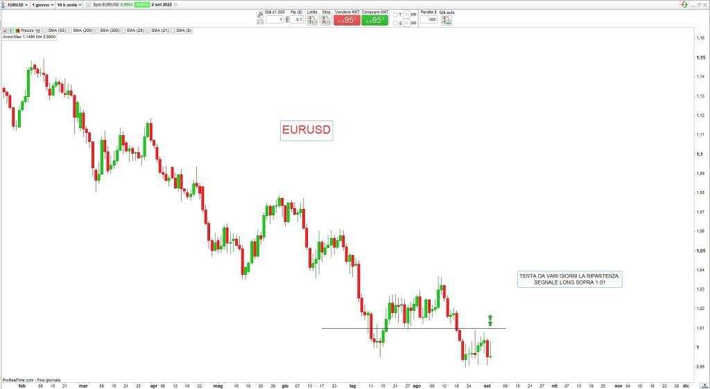 mercati valutari con buona volatilità che mostrano ancora la forza del Dollaro Usa e la debolezza dello Yen, a riprova che il driver continua a essere l’azione delle Banche Centrali nella lotta all’inflazione, Settembre offrirò nuovi appuntamenti per la Fed e la Bce, quest’ultima con Christine Lagarde sembra potersi accodare alle mosse di Powell e gli investitori si attendono un aumento dei tassi di 75 punti base per la zona Euro, sarà sufficiente per invertire il trend ribassista di EurUsd?