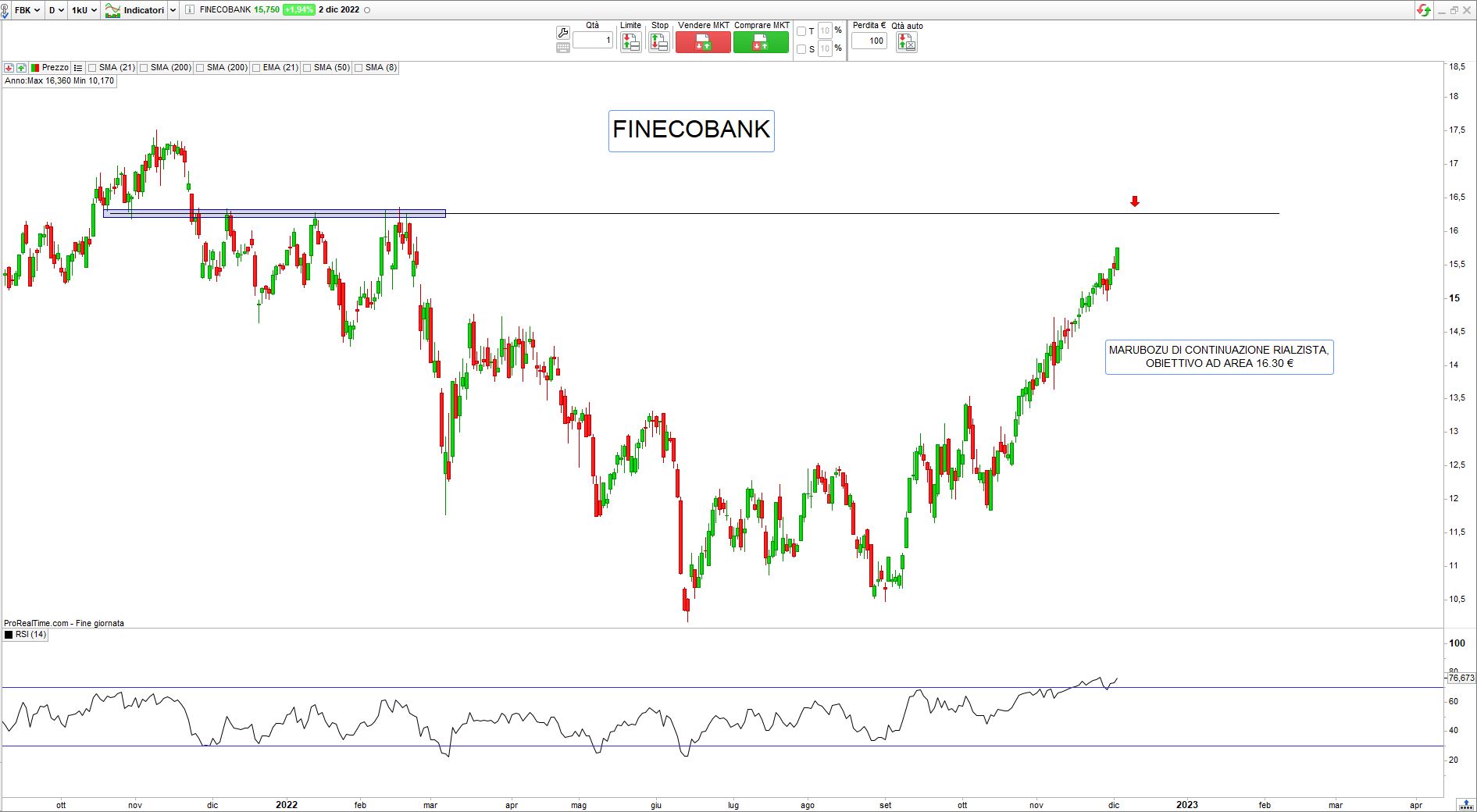 dopo quasi due mesi di rialzo i mercati azionari entrano in una fase di trading range, in alcune aree iniziano ad arrivare segnali positivi circa il raffreddamento dell’inflazione ma sono dati che ancora non offrono sicurezza agli investitori, che hanno comunque festeggiato (a Wall Street) dopo le parole di Powell su un possibile freno circa il rialzo dei tassi, differente la situazione in Europa dove ancora questi segnali non si manifestano, ma la Borsa Italiana nelle ultimissime sessioni ha traccheggiato, senza però stornare o dare evidenti cenni di cedimento, stante il forte ipercomprato su moltissimi titoli.