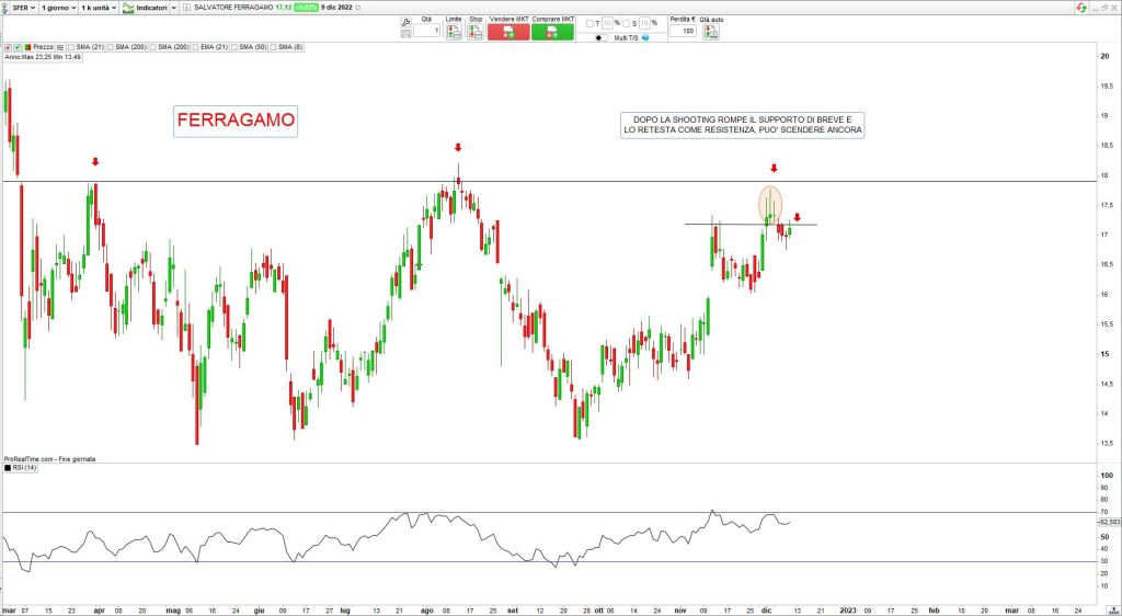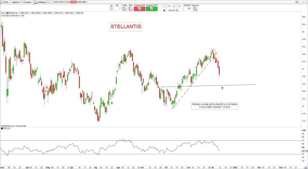 In questo bailamme di notizie ricordiamo che il dato dell’inflazione Usa non ha soddisfatto gli investitori che temono ancora una volta l’azione della Fed proprio per contrastare la salita dei prezzi, paura che ha fatto chiudere in negativo Wall Street. E il Ftsemib? Tende ad allontanarsi dal cruciale livello/resistenza pluriennale dei 25.000 ma mantiene una intonazione di fondo rialzista, possibile ancora una fase di consolidamento e riaccumulo a livelli più bassi, anche se si attende il famoso “rally di Natale”.