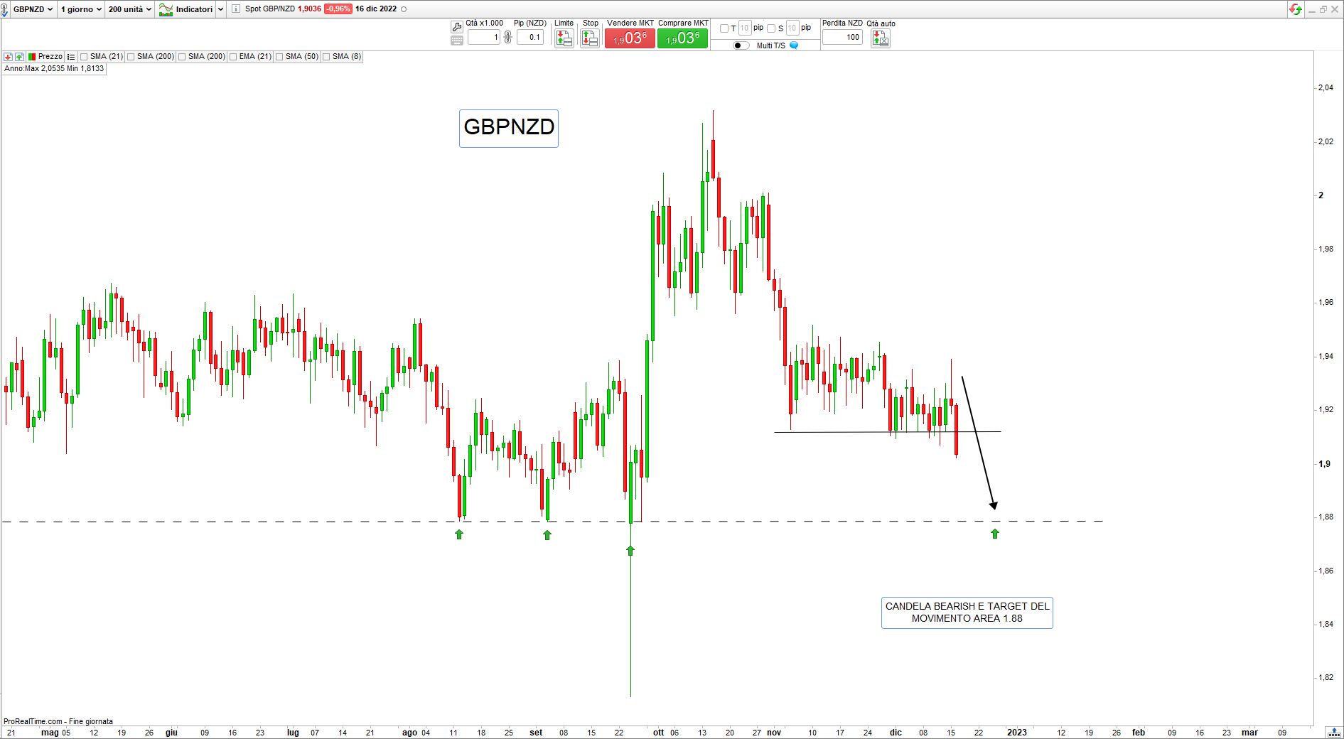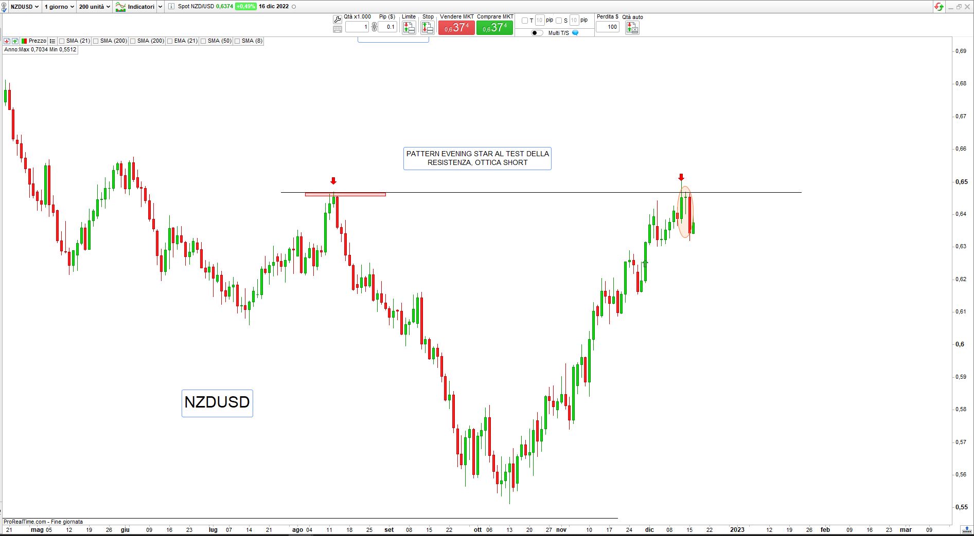 In merito a EurUsd il trend al ribasso sembra ormai definitivamente invertito ma le ultime due sessioni mostrano un accenno di ripiegamento e potrà essere una nuova occasione di ingresso long nei prossimi giorni, il Dollaro Neozelandese sembra non volersi fermare nella sua ascesa contro tutte le altre valute, vedremo se qualche timido cenno di stanchezza è il preludio a un ripiegamento.