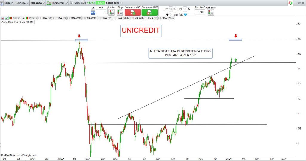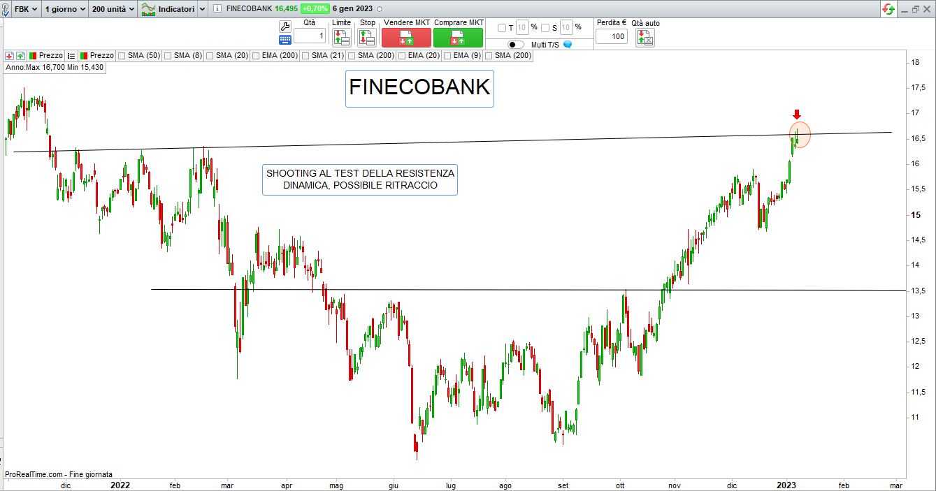 Occorre tenere conto che è stata in ogni caso una settimana festiva per molti operatori e quindi abbiamo avuto volumi non importanti, ma senza dubbio nel breve l’intonazione dei listini resta positiva, bene soprattutto le banche sul nostro listino, ma passiamo come sempre con l’aiuto dell’analisi tecnica ai grafici per cercare spunti di trading:
