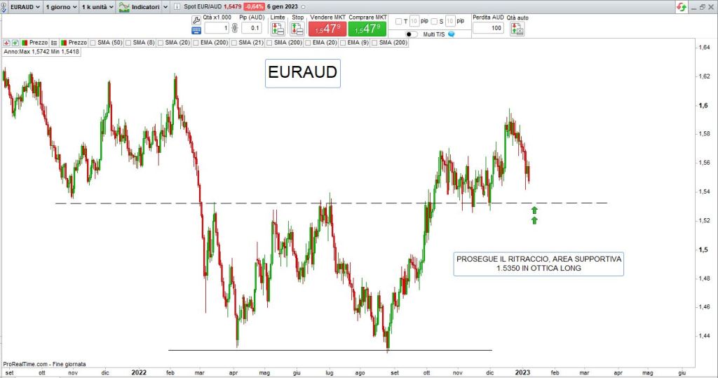 ancora una settimana che vede i dati macro e le dichiarazioni dei governatori delle banche centrali dettare la volatilità sui mercati valutari, EurUsd che sembrava poter stornare trova di nuovo forza dopo che l’inflazione in Europa sembra rallentare la sua corsa, il biglietto verde perde di nuovo forza mentre tra le altre valute assistiamo a uno sprint del Dollaro Australiano e quello Neozelandese; nel brevissimo i movimenti sui grafici paiono erratici e occorre impostare il trading multiday con prudenza e sempre con uno stop loss inserito in macchina.