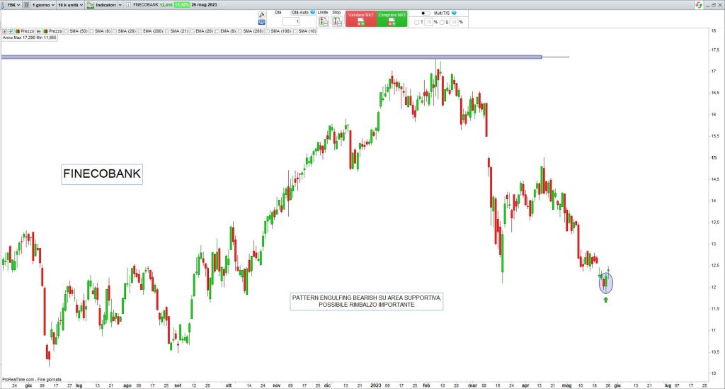 si chiude una settimana ricca di incertezze e volatilità sui listini azionari e non fa certo eccezione Piazza Affari, il Ftsemib resta ancora sotto alla fatidica soglia/resistenza dei 28.200 punti ma non riesce a prendere una direzione definita, alcuni comparti sono tonici e altri fiacchi, si attendono notizie anche dagli Stati Uniti in merito all’accordo sull’innalzamento del tetto del debito pubblico, l’ultima notizia è lo spostamento al 5 di Giugno la data del possibile default: la Yellen si sta impegnando come mai, l’ottimismo è palpabile e gli investitori in fondo sanno che un accordo, come sempre, si troverà.
