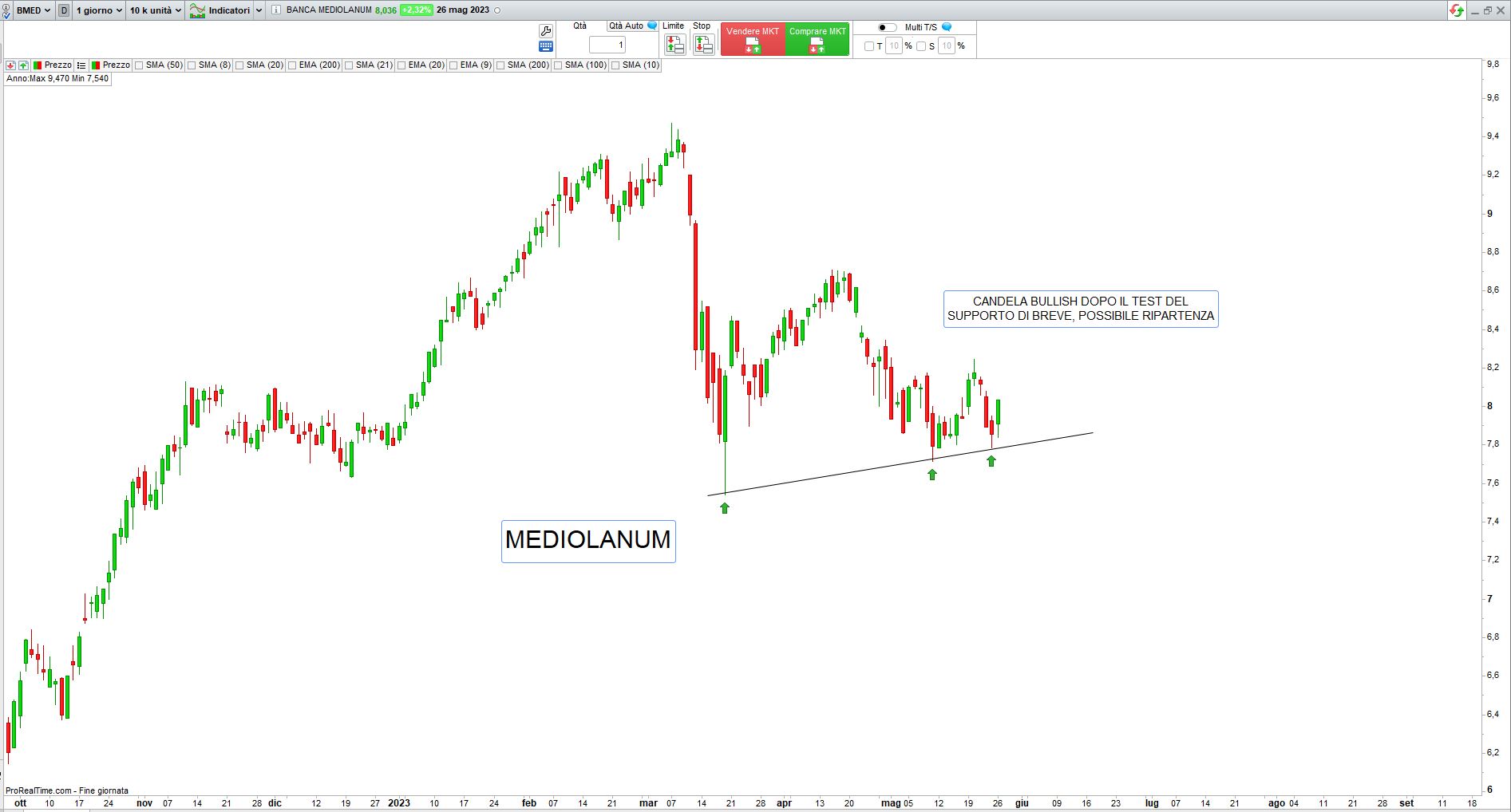 Noi cerchiamo come sempre di fare uno stock-picking delle azioni in base all’analisi tecnica per un trading di breve periodo, vediamo quindi alcune occasioni sui nostri listini di Borsa: