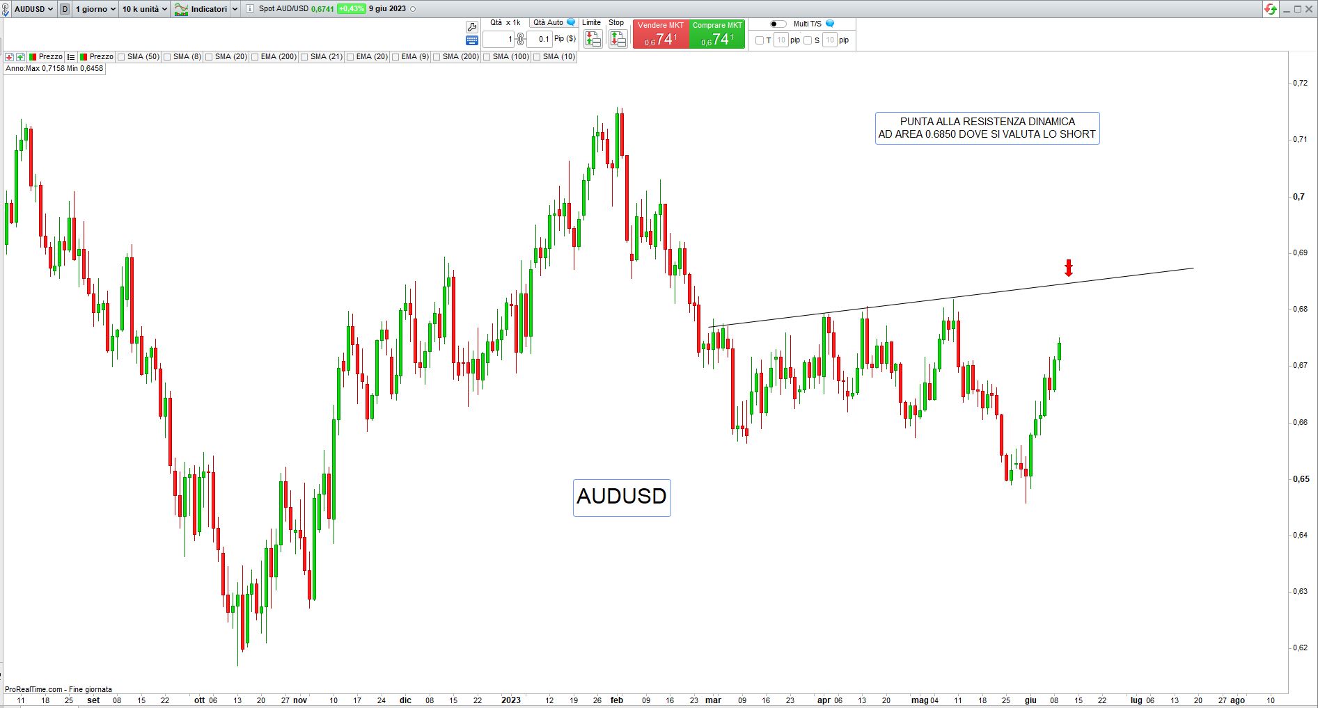 poca volatilità nella scorsa ottava di Borsa per quanto riguarda il Forex, si attendono gli appuntamenti con le banche centrali nella prossima settimana, Fed e Bce potrebbero adottare in questa sessione una differente politica: non si esclude una pausa nel rialzo dei tassi da parte di Powell, mentre in Europa la lotta all’inflazione dovrebbe proseguire con un aumento di altri 25 punti base da parte di miss Lagarde.