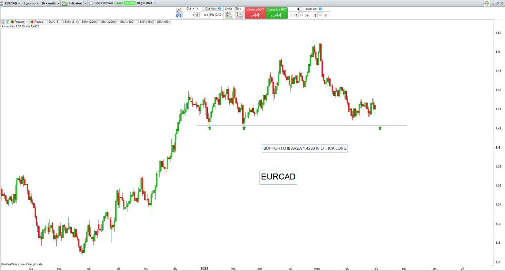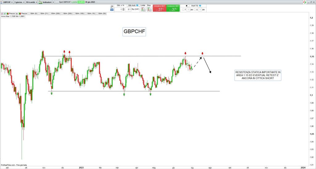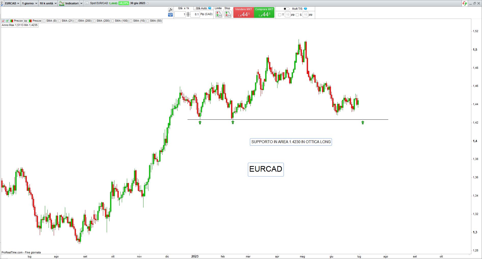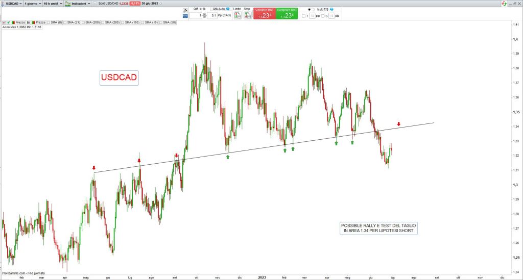 mercati valutari senza particolari scossoni nell’ottava di Borsa passata, la coppia EurUsd non mostra chiara direzionalità nel brevissimo e area 1.11 per ora sembra una solida resistenza, in attesa di nuove mosse ( o comunicazioni…) da parte della Bce e della Fed, nelle ultime sessioni abbiamo assistito a qualche spunto rialzista grazie alla conferma del nuovo rialzo dei tassi annunciato dalla Lagarde per il mese di Luglio, il tutto mentre l’inflazione inizia a dare timidi cenni di rallentamento, buoni i dati ad esempio in Spagna che ha visto un aumento dei prezzi dell’1,9%.