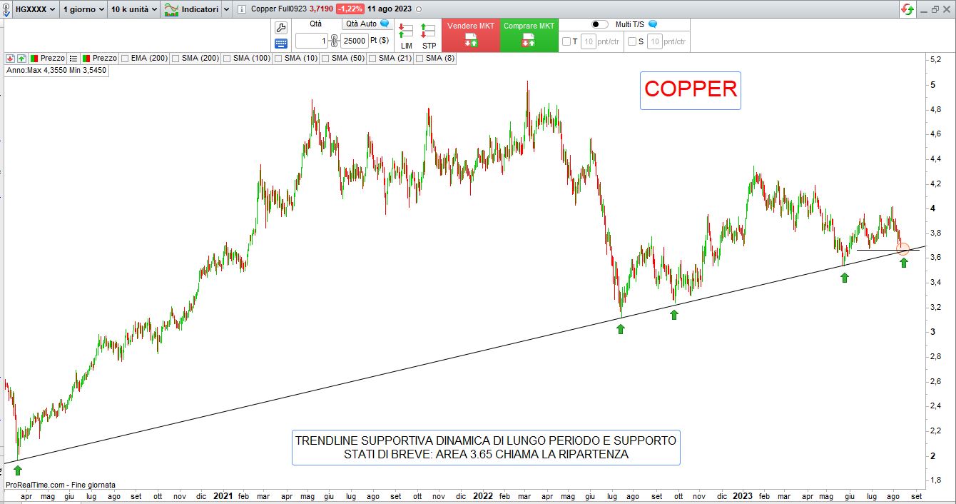 Fase di storno in atto sulle coloniali mentre il Petrolio ha proseguito nella sua corsa dopo aver superato agevolmente la soglia degli 80 $ per barile, ancora incertezza per l’oro che resta lontano dai massimi dei 2000 $ per oncia, zona di alert per il Copper il cui prezzo continua a scendere, segnale solitamente negativo per l’economia e per le borse, visti i suoi numerosi usi industriali,