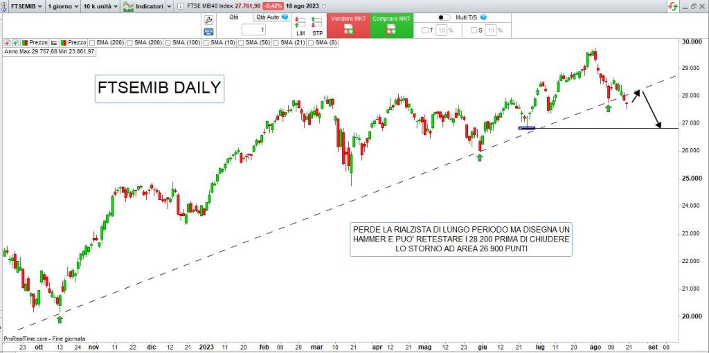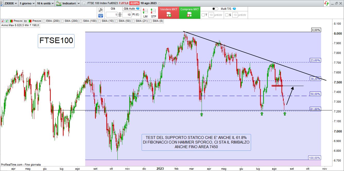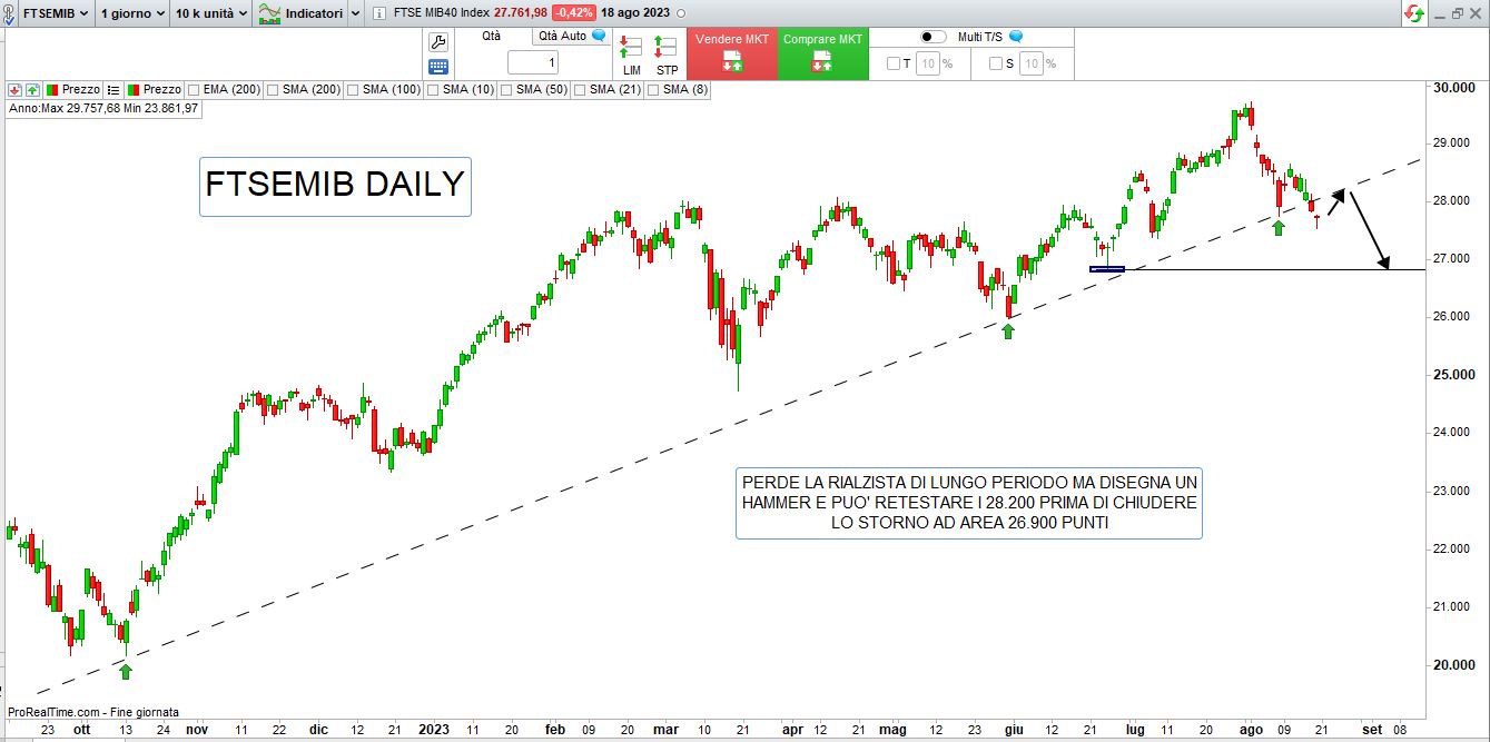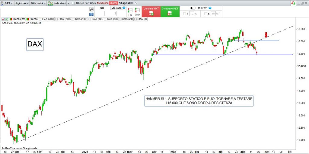 Nel brevissimo, esaminando i principali listini con l’aiuto dell’analisi tecnica, ci sembra però possibile il classico “rimbalzo tecnico“, opportunità di trading interessante in ottica multiday anche se di breve periodo, vediamo insieme alcuni grafici:
