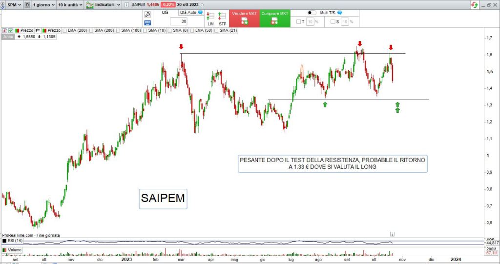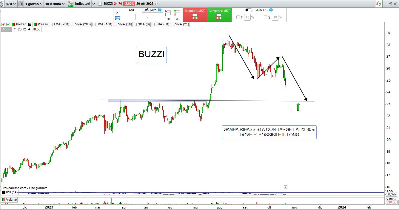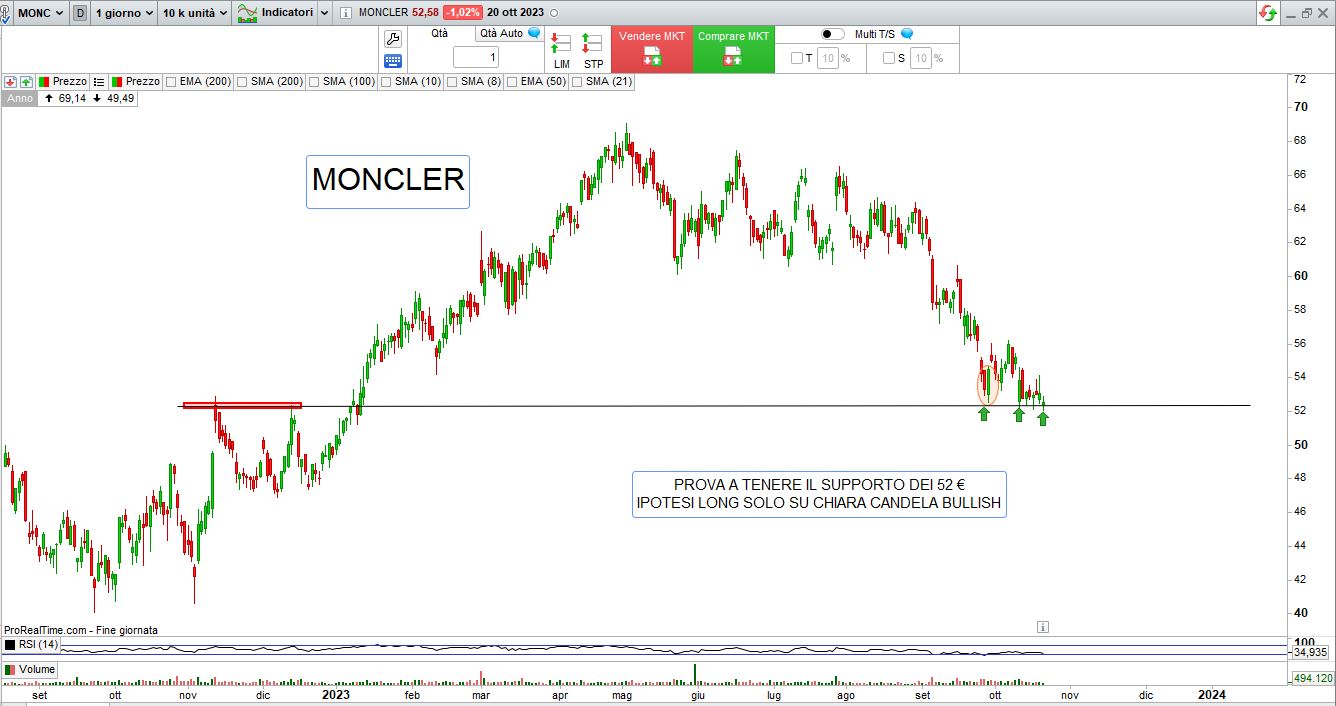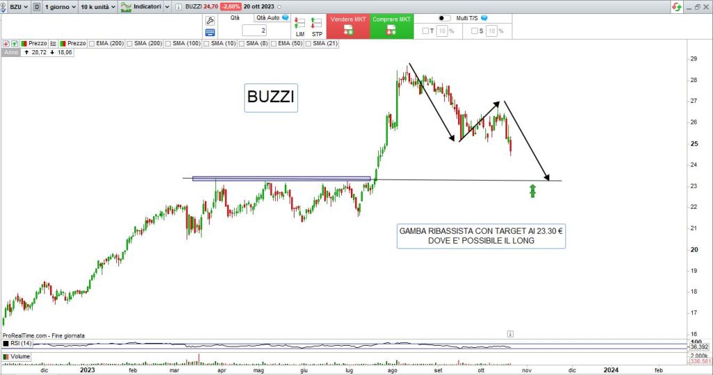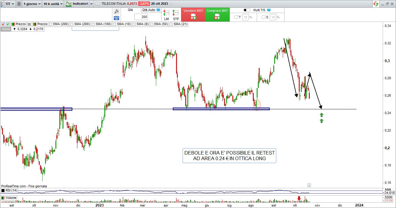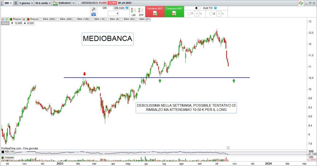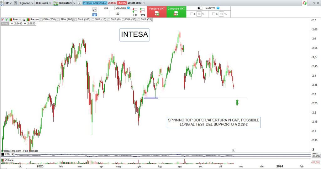 Fatto sta che negli ultimi giorno il sentiment è peggiorato e la volatilità aumentata, il conflitto in Medio Oriente non pare controllabile o perlomeno gestibile nel brevissimo e nel dubbio è salita l’avversione al rischio, come sempre con l’aiuto dell’analisi tecnica cerchiamo opportunità di trading senza farci condizionare da altro, gestendo il rischio assunto con un severo money management: