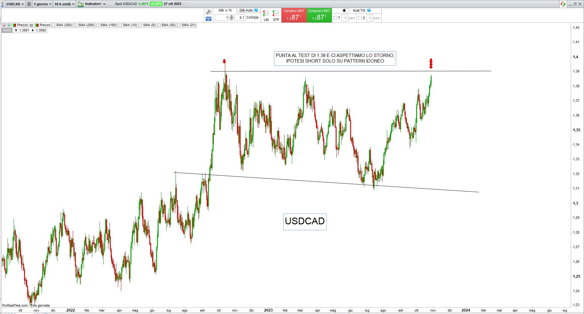 Come sempre ci atteniamo al prezzo e operiamo con l’analisi tecnica per cogliere le migliori occasioni di trading, vediamole insieme: