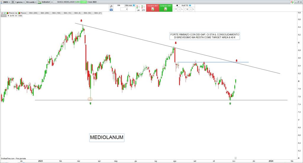 i listini azionari hanno vissuto una settimana di rialzi generalizzati con ottimi performances e il nostro Ftsemib ha partecipato alla festa guadagnando il 5.08% portandosi sopra ai 28.600 punti, i dati relativi all’inflazione sembrano poter rallentare l’azioni di rialzo dei tassi delle banche centrali, in settimana la Fed li ha ancora una volta mantenuti invariati e questo dà fiducia agli investitori che si aspettano prima o poi addirittura un taglio dei tassi stessi, cosa che storicamente porta beneficio alle società quotate, che potrebbero accedere al credito sostenendo costi meno onerosi.