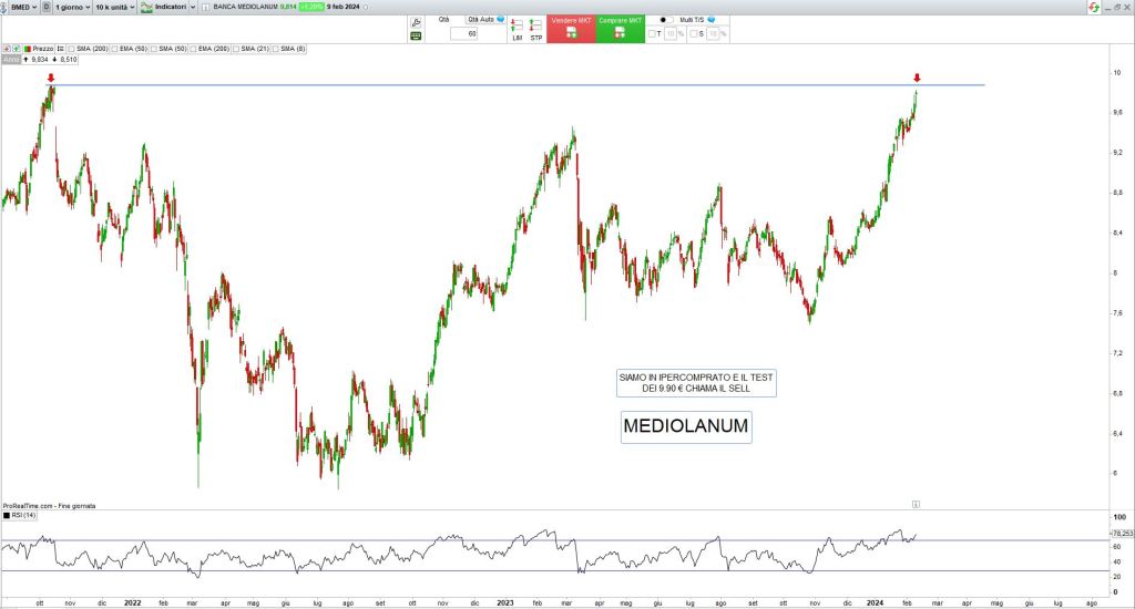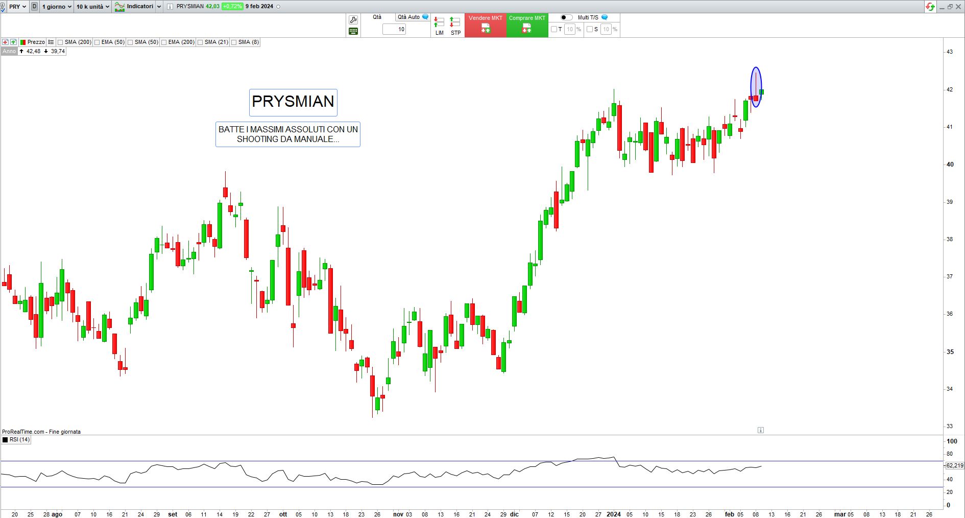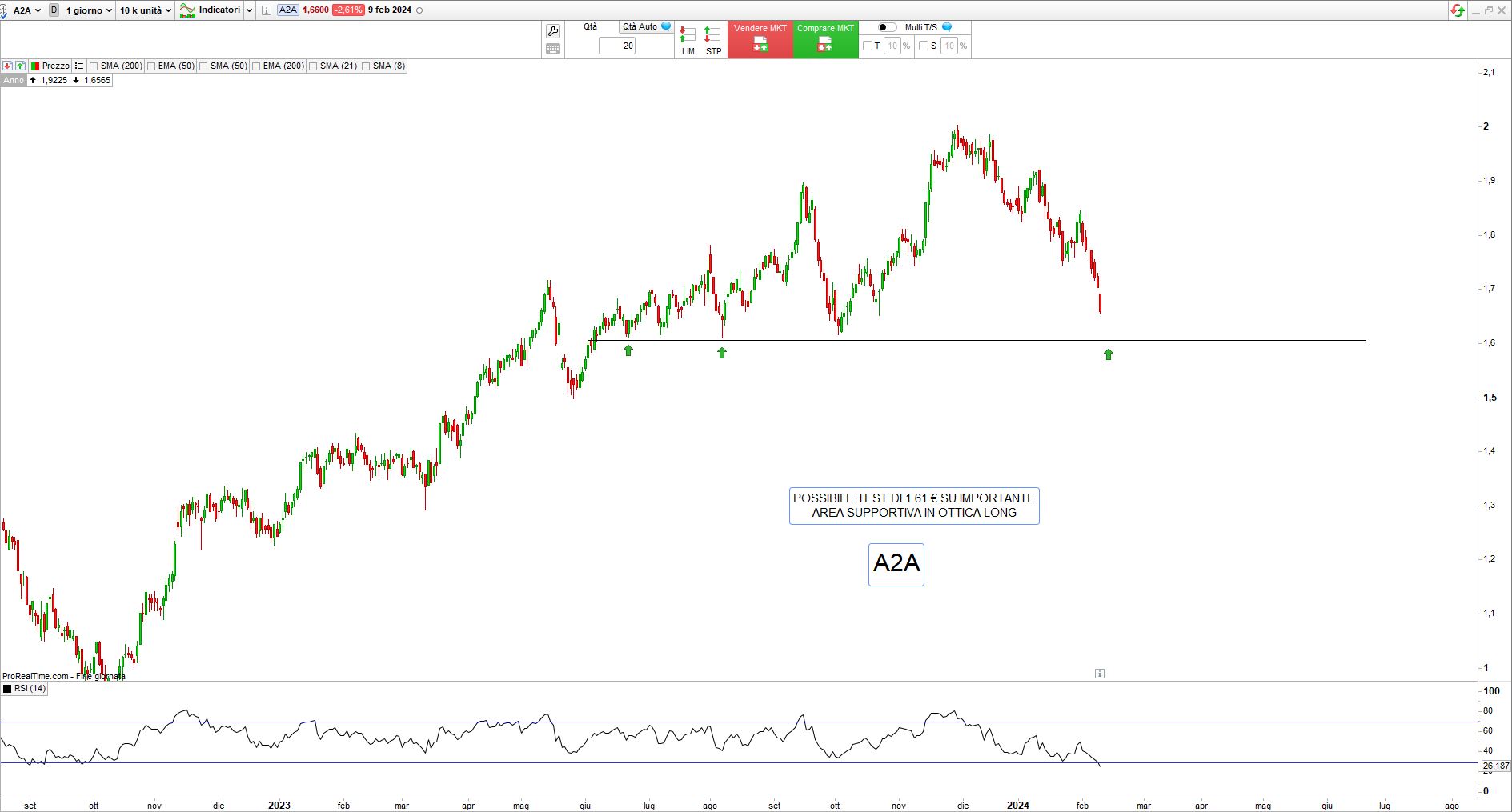 Passiamo ai grafici di 8 azioni Italia con l’aiuto dell’Analisi Tecnica: