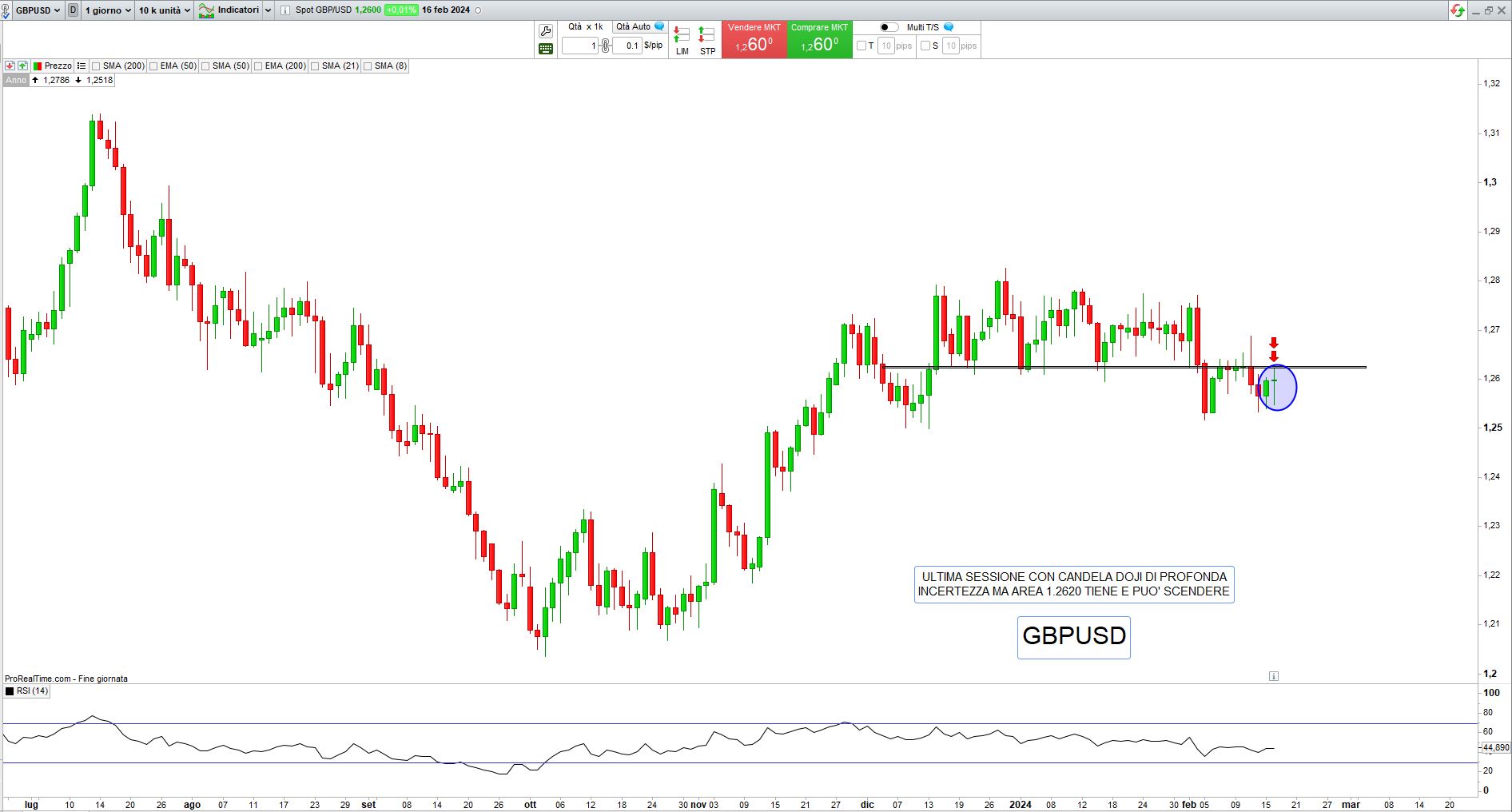 Vediamo ora con l’aiuto dell’analisi tecnica alcune opportunità di trading multiday su alcune coppie di valute: