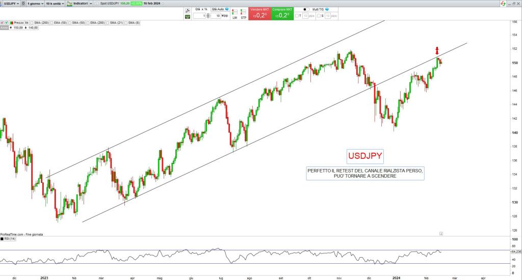 Ma tutto sembra poi essere stati riassorbito nel finale della seduta di venerdì, con la coppia EURUSD che dopo una veloce discesa si è riportata vicino al livello di 1.08. Una approfondita analisi di EURUSD con analisi ciclica è disponibile sul nostro canale Youtube, visibile da questo LINK