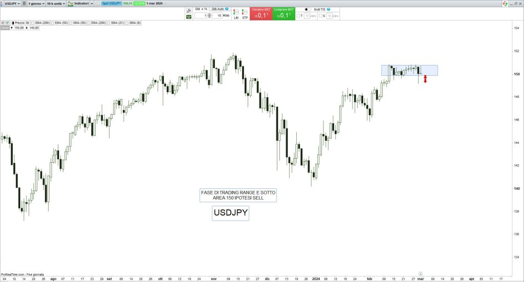 Anche lo Yen sembrava potersi finalmente rafforzare nonostante prosegua la politica ultra-accomodante della Bank of Japan ma la forza dell’azionario nipponico inanella nuovi record con il Nikkei ai massimi degli ultimi 30 anni, e la valuta resta ancora al palo e torna in area 150 contro il dollaro Usa.