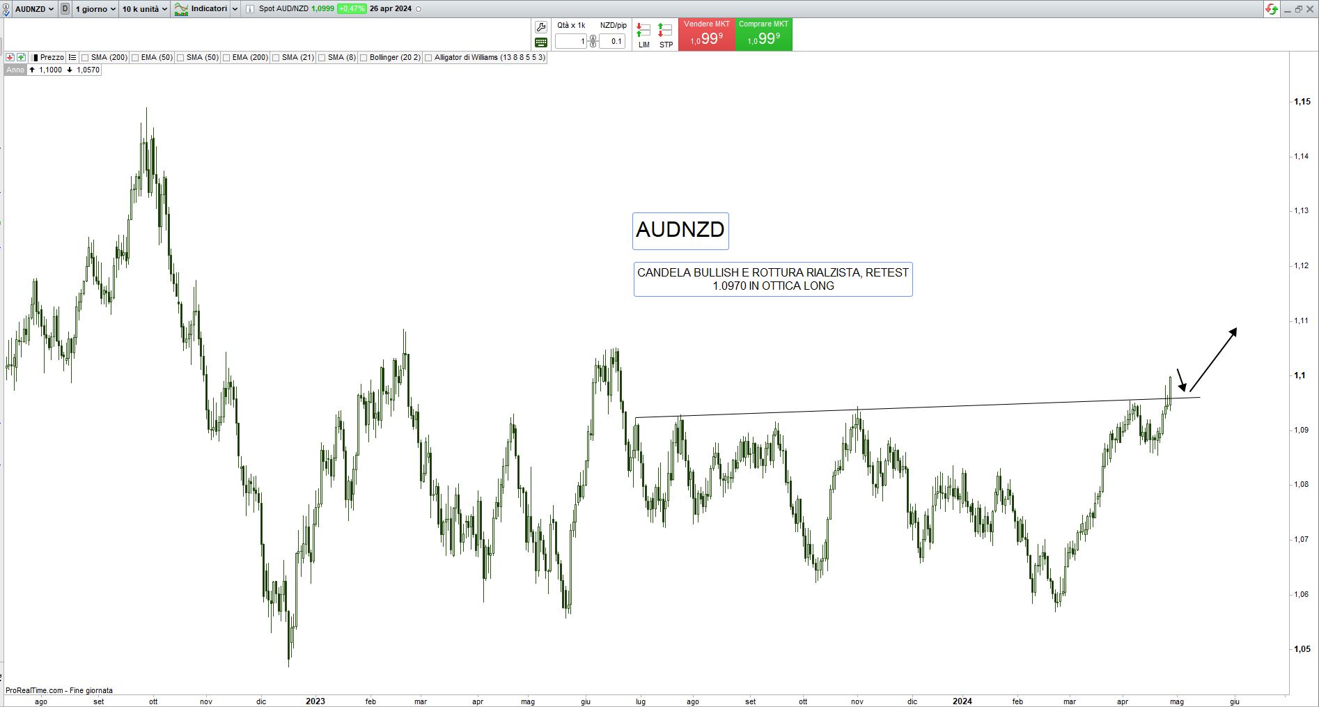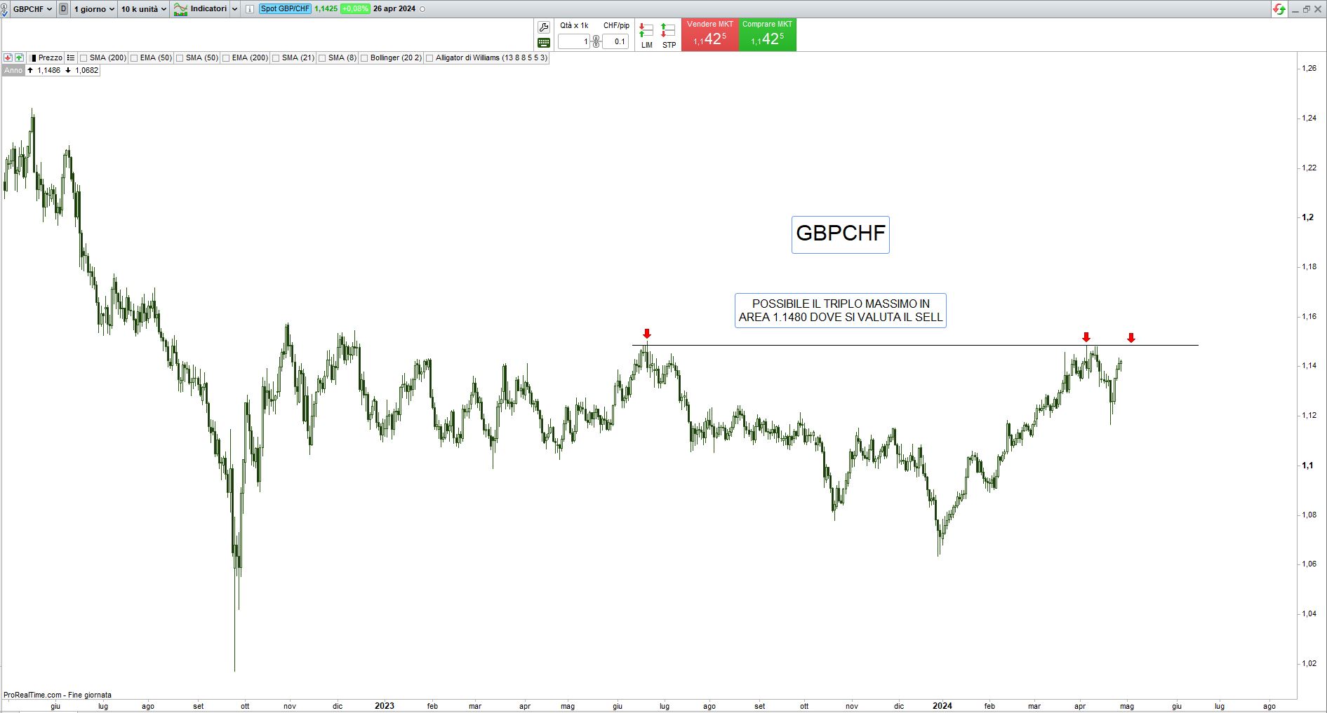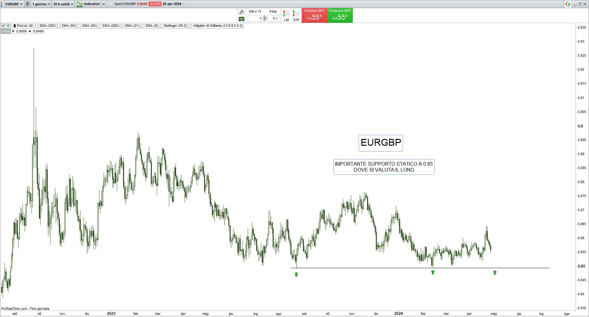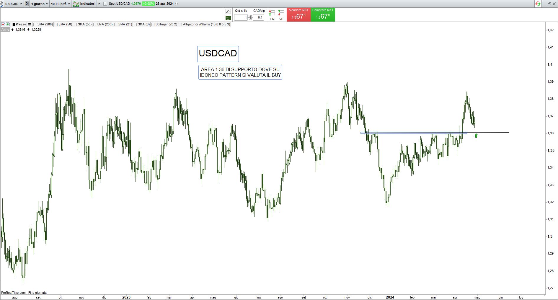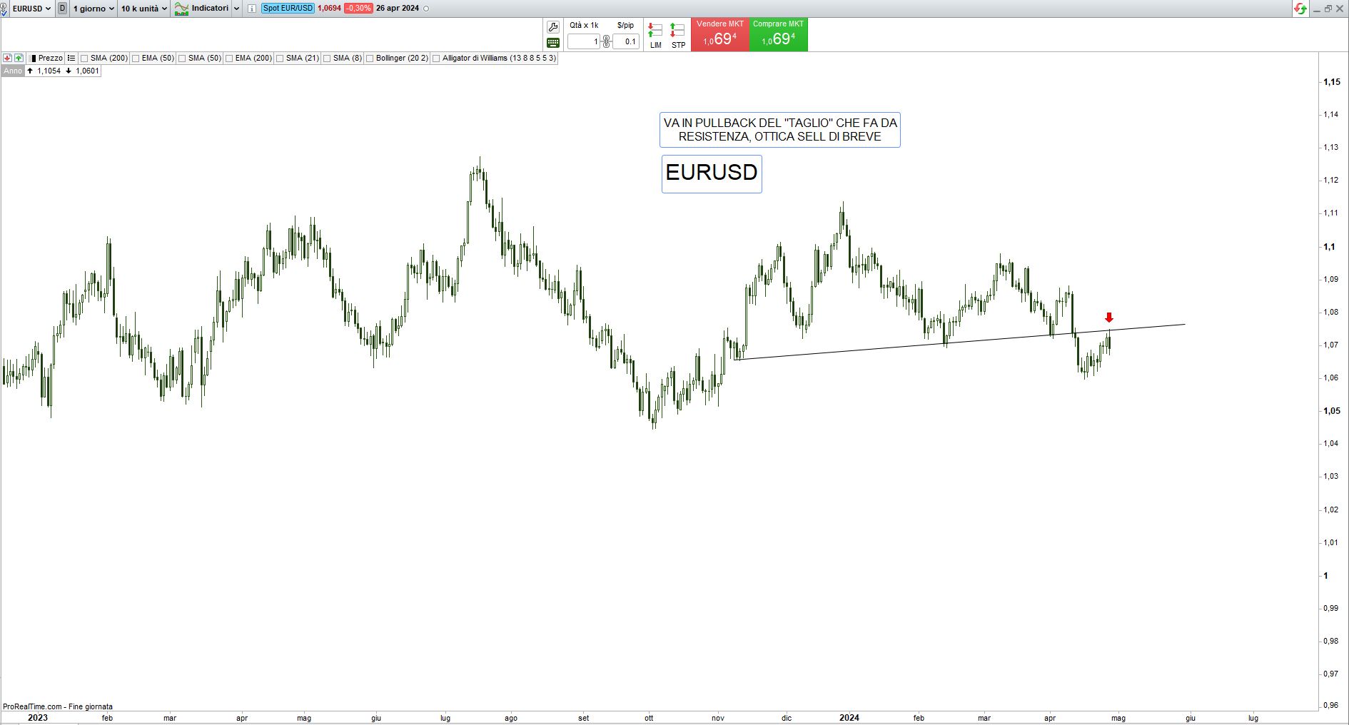 Passiamo all’analisi tecnica per il trading di breve periodo: