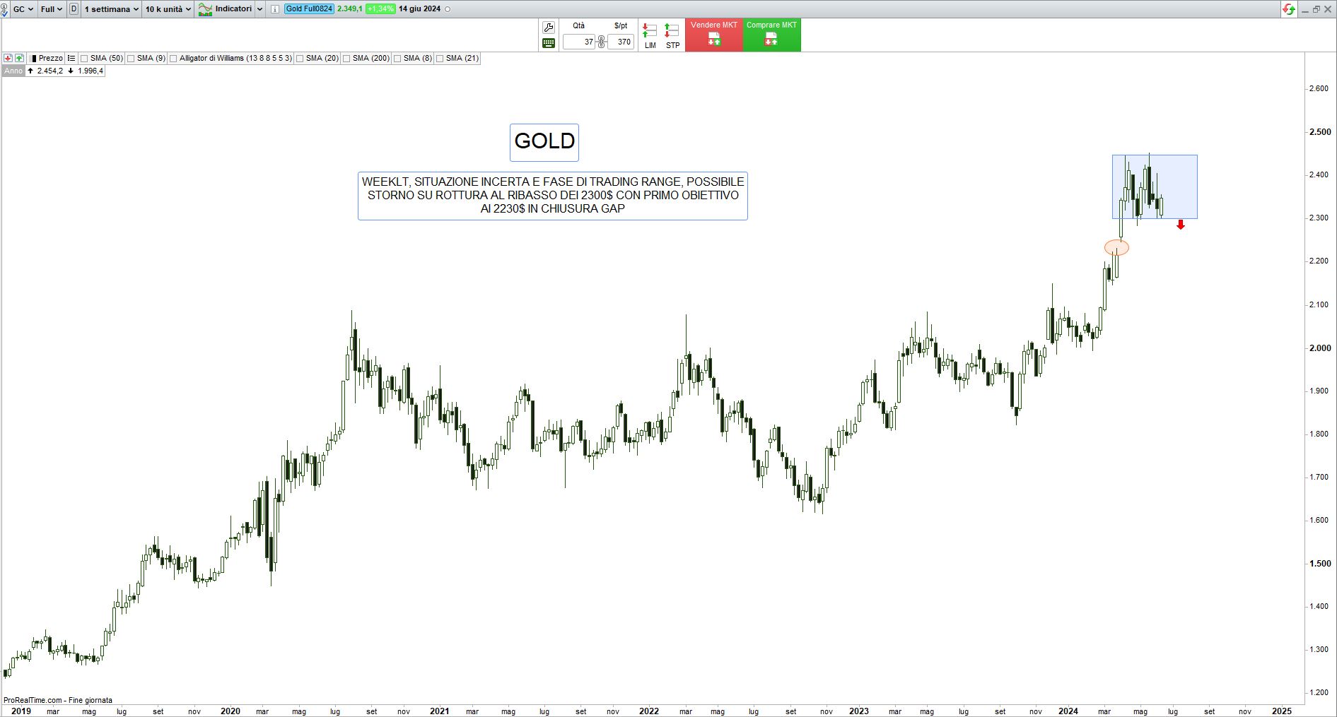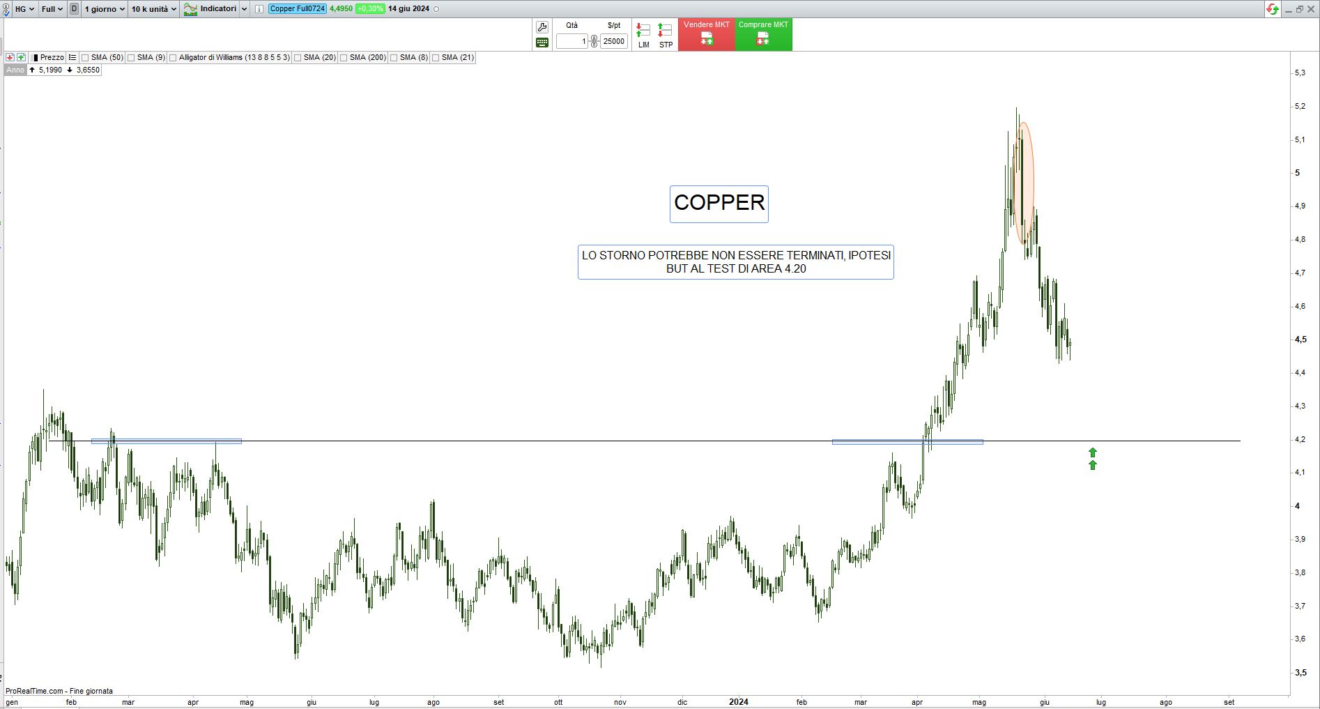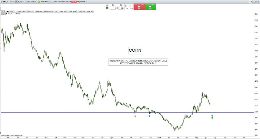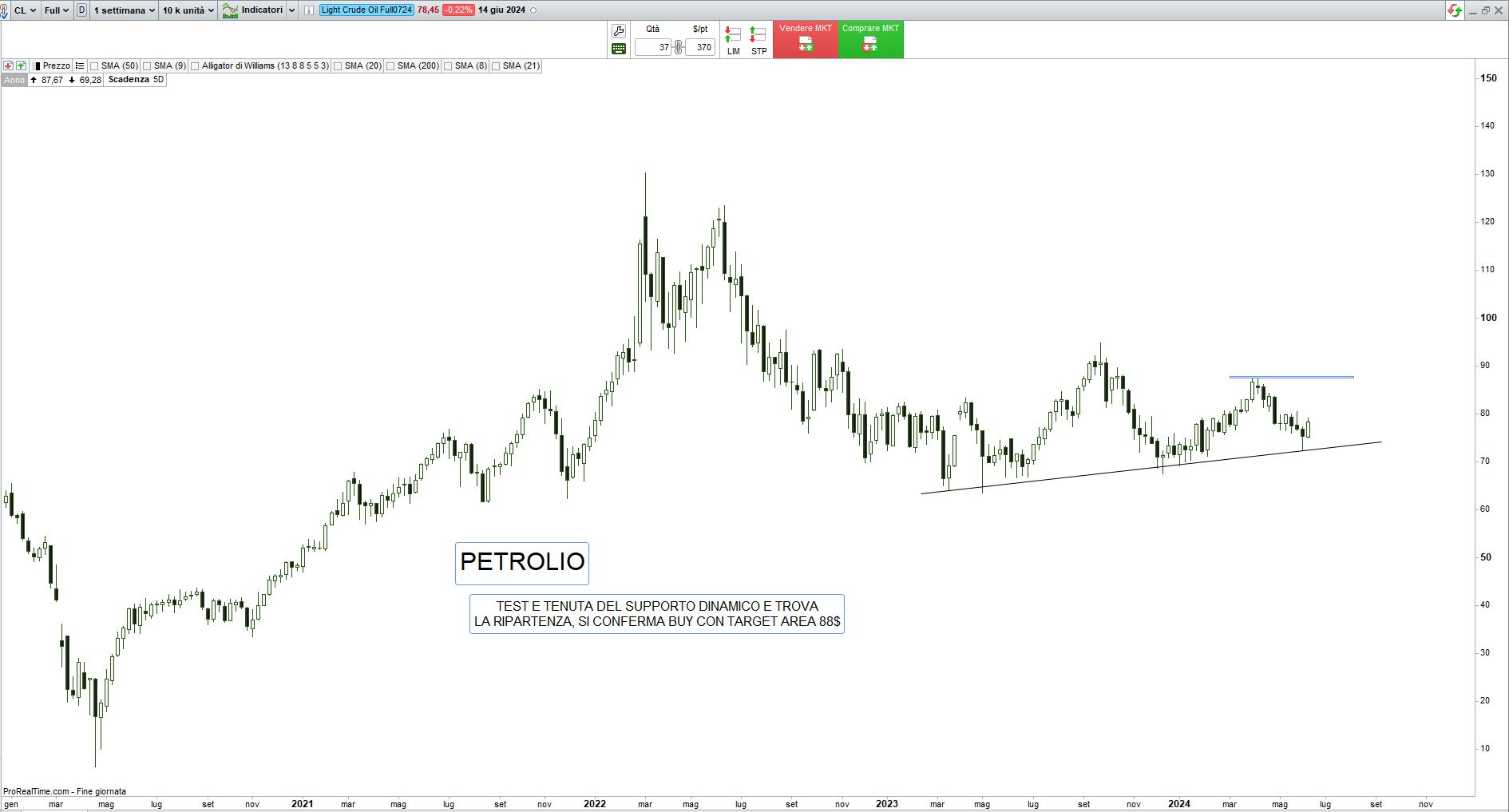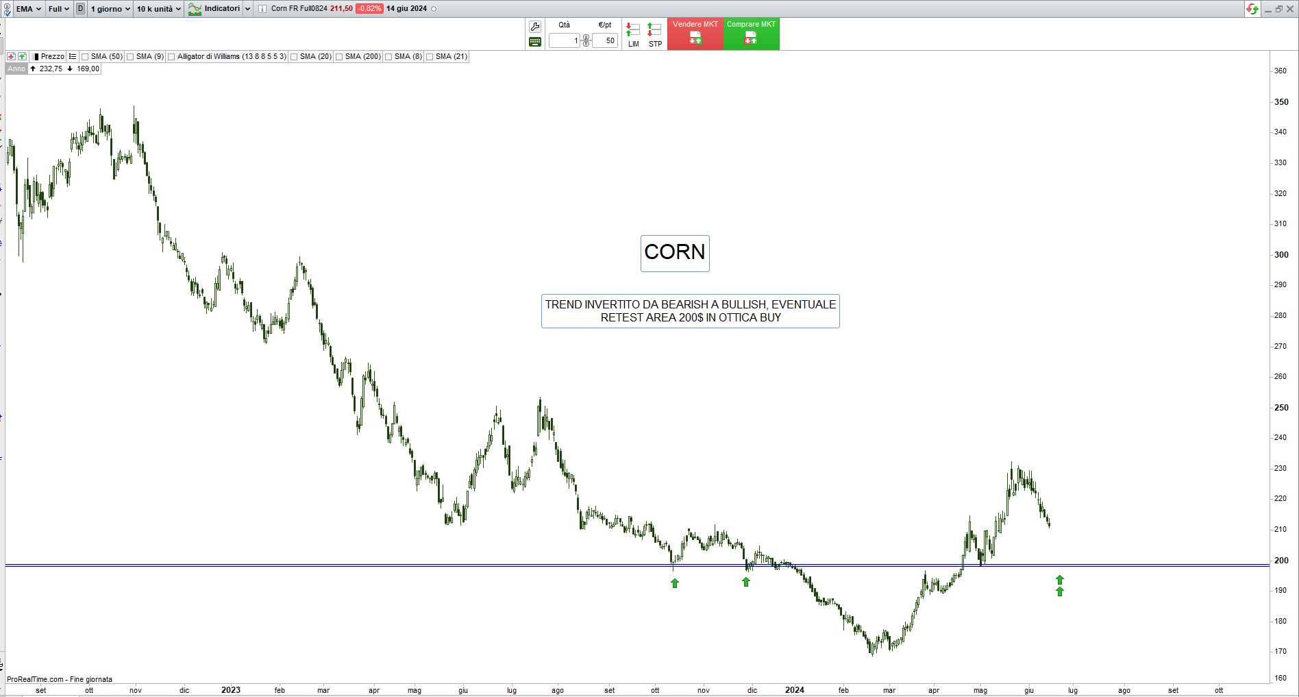 Dalle notizie passiamo ai prezzi, ossia all’analisi tecnica per cogliere possibili spunti per il nostro trading multiday sulle commodities e vediamo alcuni grafici: