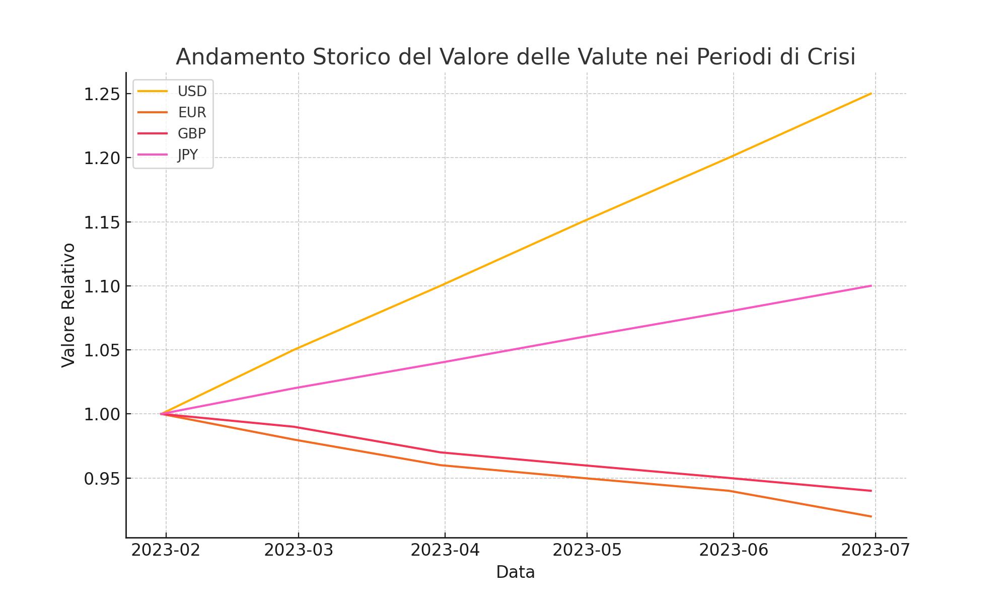Grafico 3: Andamento Storico del Valore delle Valute nei Periodi di Crisi
