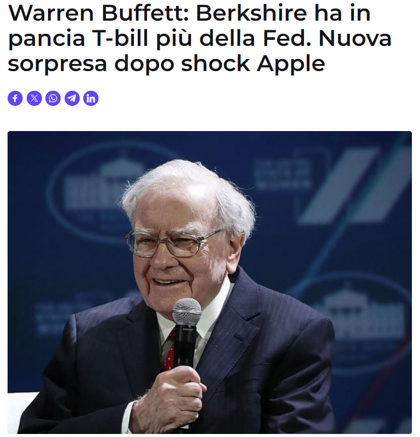 l’Evoluzione del Portafoglio Azionario di Warren Buffett: riduzione della Partecipazione in Apple e aumento degli Investimenti in Titoli di Stato