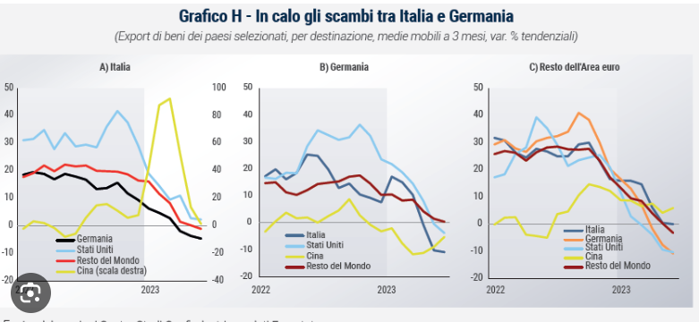 - Rallentamento della domanda globale: Con la crisi energetica e le turbolenze geopolitiche, molte economie globali stanno rallentando, riducendo la domanda di beni tedeschi, in particolare quelli industriali.