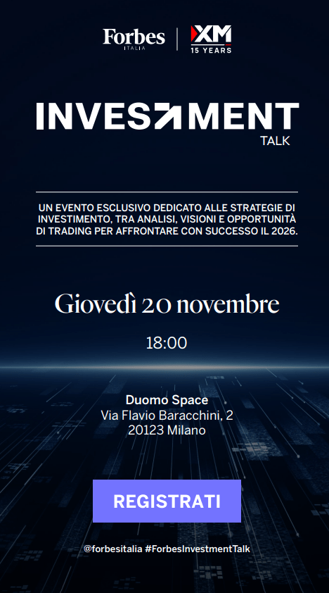 il prestigioso evento di Forbes Investment Talk si terrà Giovedì 20 Novembre a Milano, e grazie alla collaborazione del nostro broker XM saremo presenti tra i relatori, vi aspettiamo per parlare di strategie di investimento e opportunità di trading!