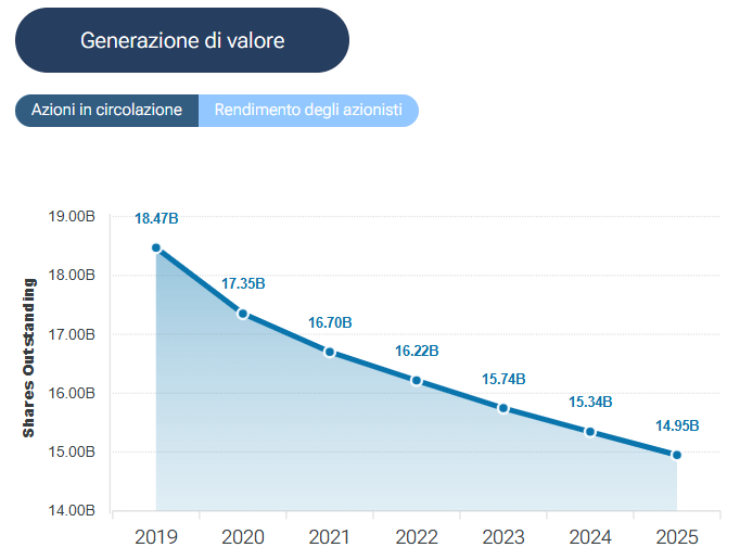 - Meta Platforms, che ha annunciato nel 2024 un massiccio piano di riacquisto da 50 miliardi di dollari, in un momento di forte volatilità del settore tech.
