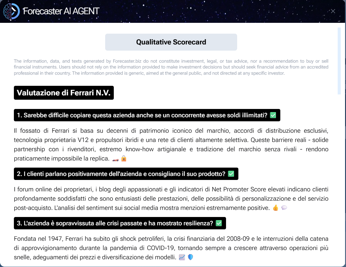 Rendersi conto in pochi minuti del reale valore di una società quotata è uno dei tanti aspetti dell’analisi fondamentale, disporre di visuale immediata e intuitiva sulla situazione di un titolo permette di evitare errori costosi, e ciò vale anche per commodities e Forex: il Forecaster Terminal dispone di innumerevoli tool e sempre in aggiornamento: la stagionalità, il cot report, l’indicatore di Wyckoff, il fair value di tutte le azioni del mondo etc.etc.