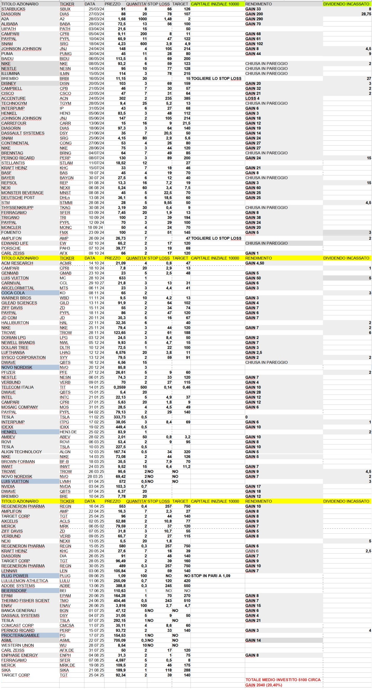 RENDIMENTO DELLE OPERAZIONI CHIUSE PERIODO 25 MARZO 2024 – 04 SETTEMBRE 2025 +20.40%