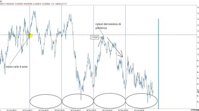 La coppia Euro Yen ci mostra dal punto di vista dei cicli una cadenza regolare sul timeframe daily, al momento ci avviamo a chiudere una fase ribassista, ragion per cui […]