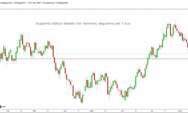 Tra i vari tioli che seguiamo Assicurazioni Generali non può mancare, la mattina del 7 luglio 2017 abbiamo assistito a un pullback successivo a una candela di stampo chiaramente rialzista, […]